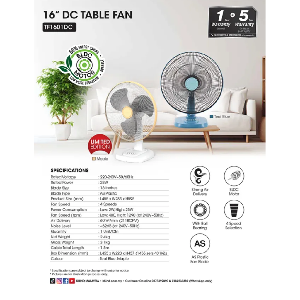 KHIND 16" DC TABLE FAN (MAPLE) TF1601DC(MAPLE)