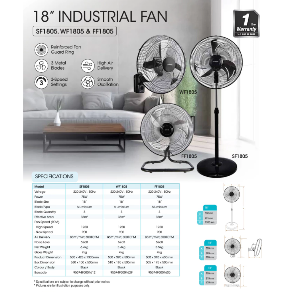 KHIND 18" INDUSTRIAL WALL FAN WF1805