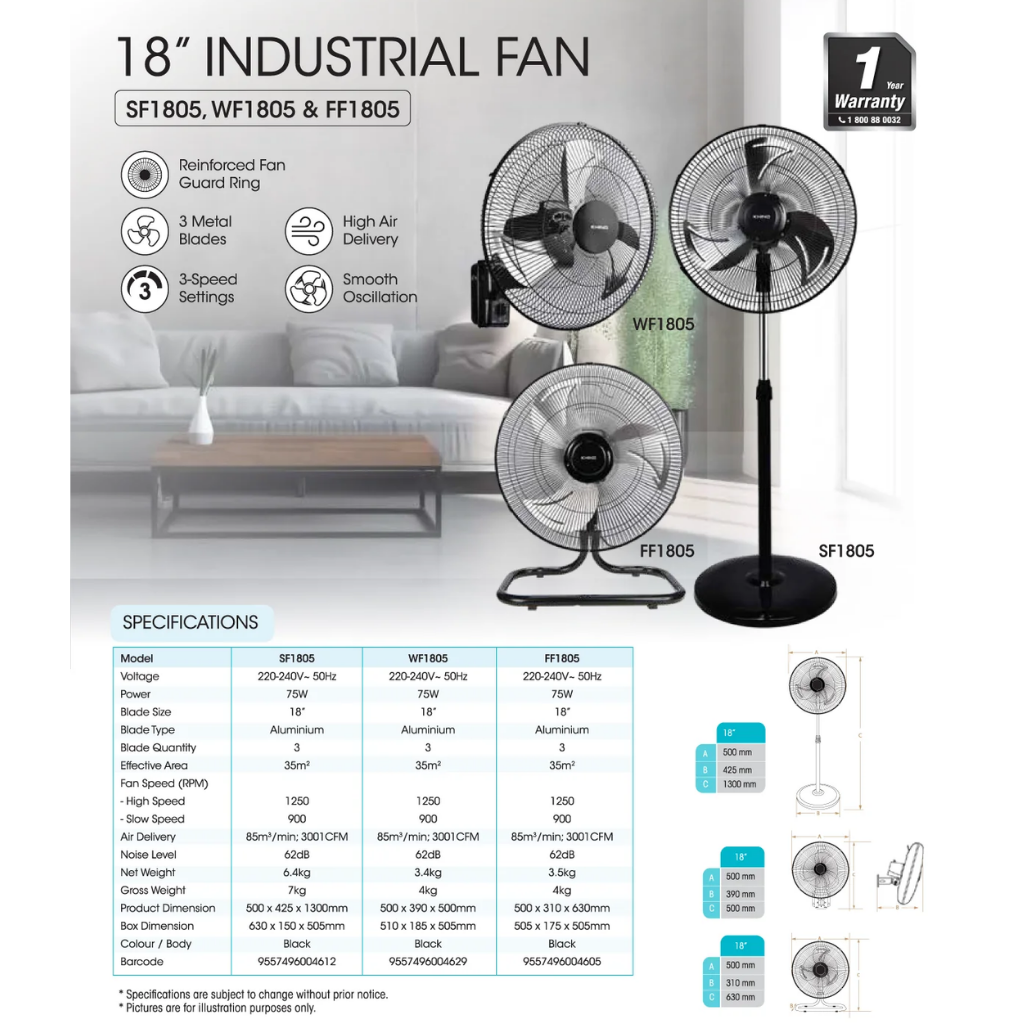 KHIND 18" INDUSTRIAL STAND FAN SF1805