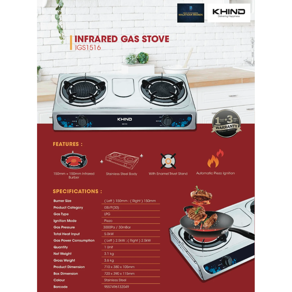 KHIND 2.5kW INFRARED GAS COOKER IGS1516
