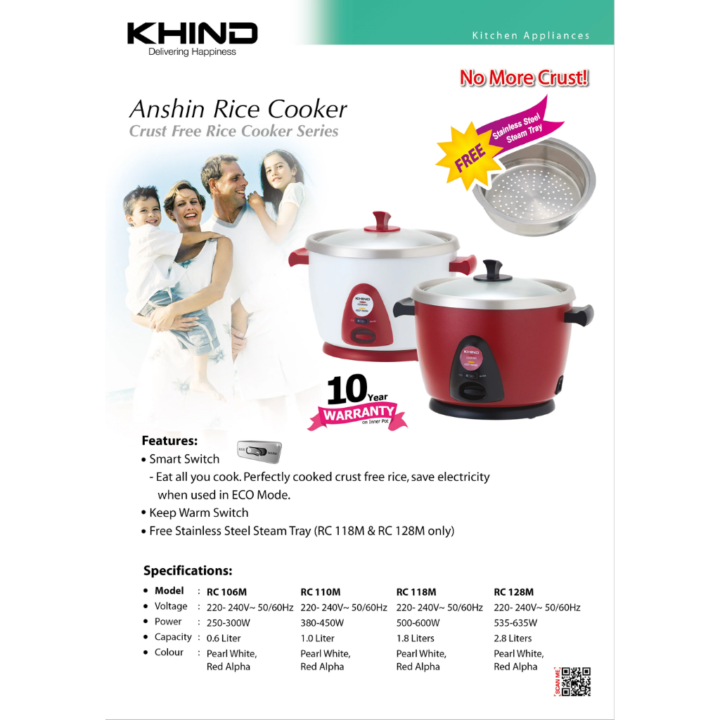 Features: • Smart Switch • Buffalo Stainless Steel Inner Pot • No Chemical Coating • Multi-Function • Nutrient Preservation • 3 Years General Warranty + 10 Years Inner Pot Warranty