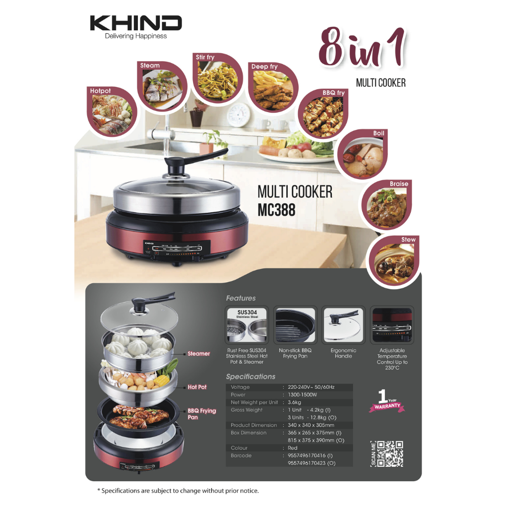 KHIND 220-240V MULTI COOKER MC388