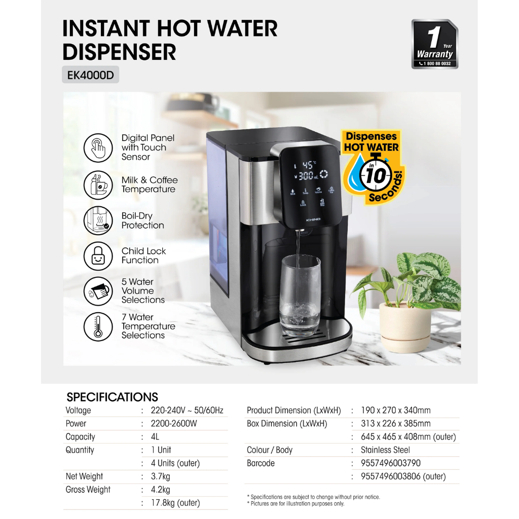 KHIND 4.0L WATER DISPENSER EK4000D