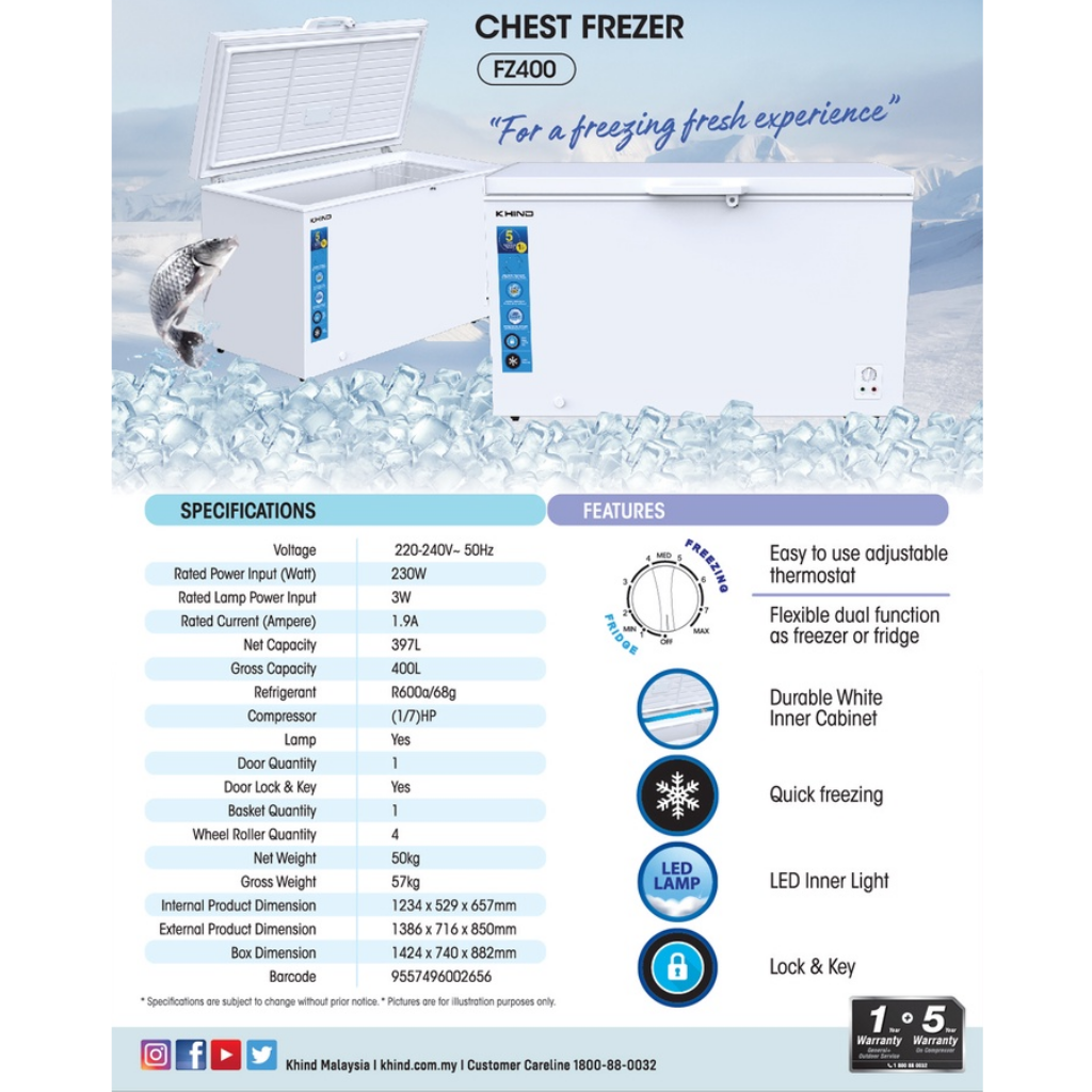 Features: • Adjustable Thermostat • Direct Cooling System • Removable Storage Basket • Built-in Safety Lock • Manual Defrost • Easy to Clean Inner Body • Warranty: 1 Year General Warranty, 5 Years Compressor Warranty