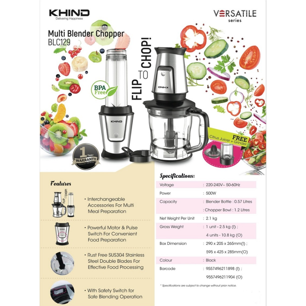 KHIND 500W MULTI BLENDER CHOPPER BLC129