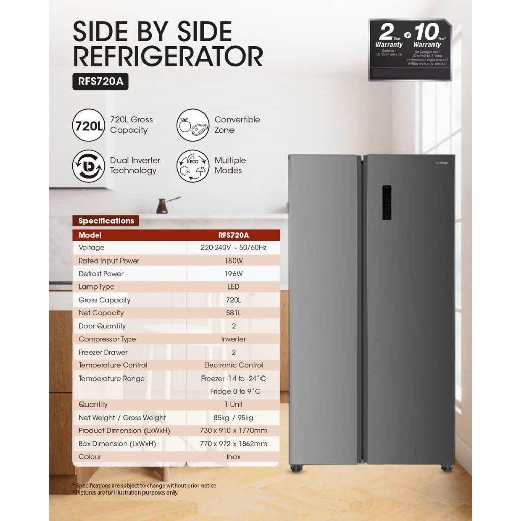 KHIND 595L SIDE BY SIDE INVERTER REFRIGERATOR RFS720A