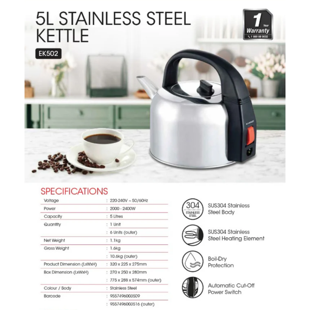KHIND 5L STAINLESS STEEL KETTLE EK502