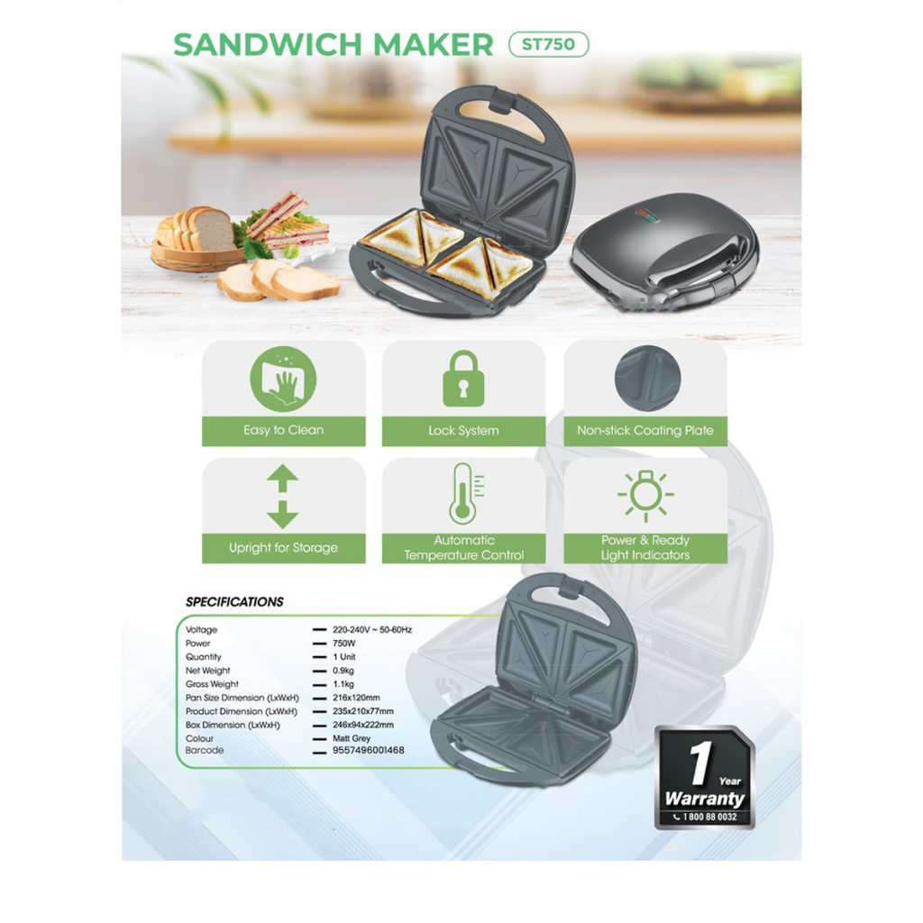 KHIND SANDWICH MAKER (MATT GREY) ST750