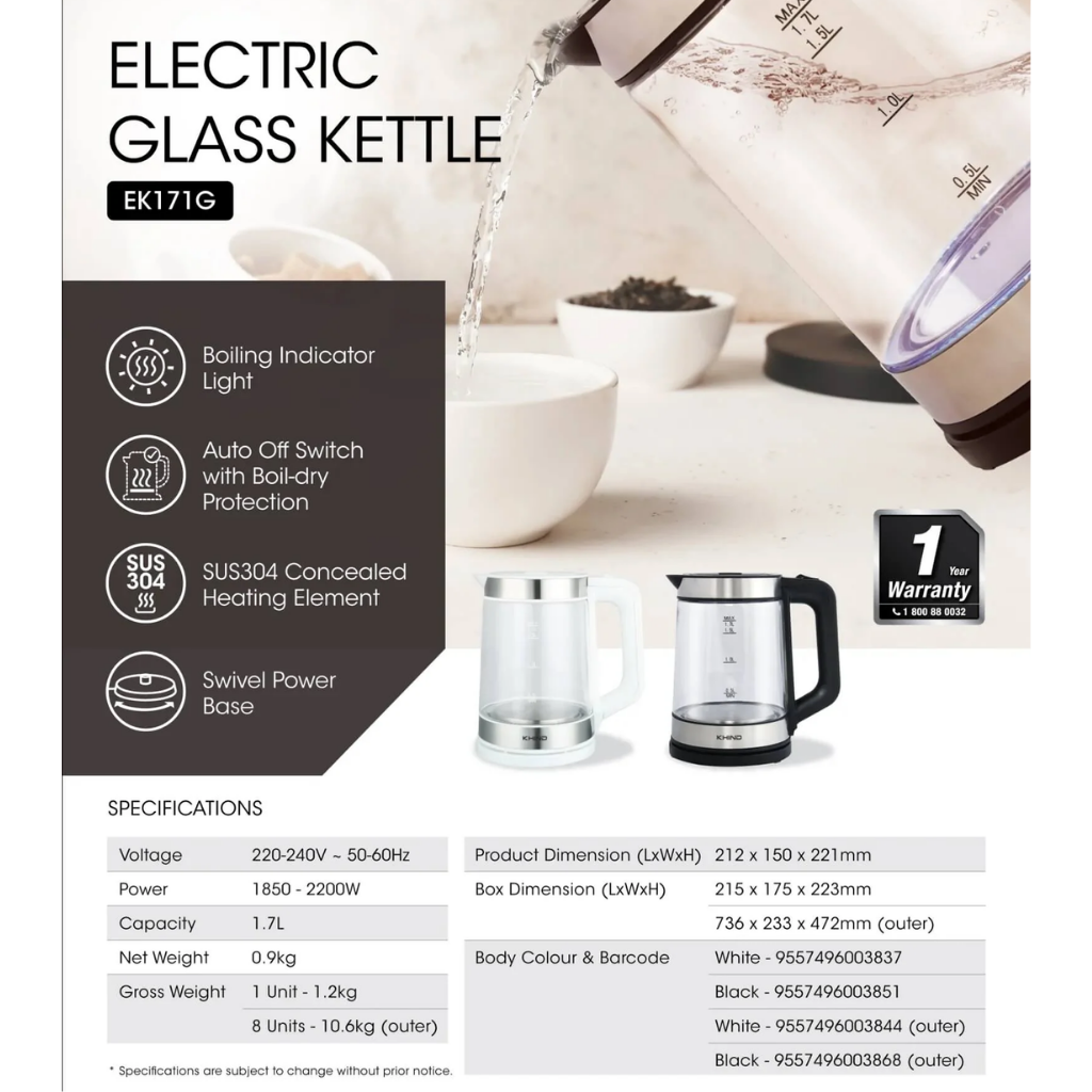 Khind 1.7L Electric Glass Kettle(Black) Ek171G (BLACK)