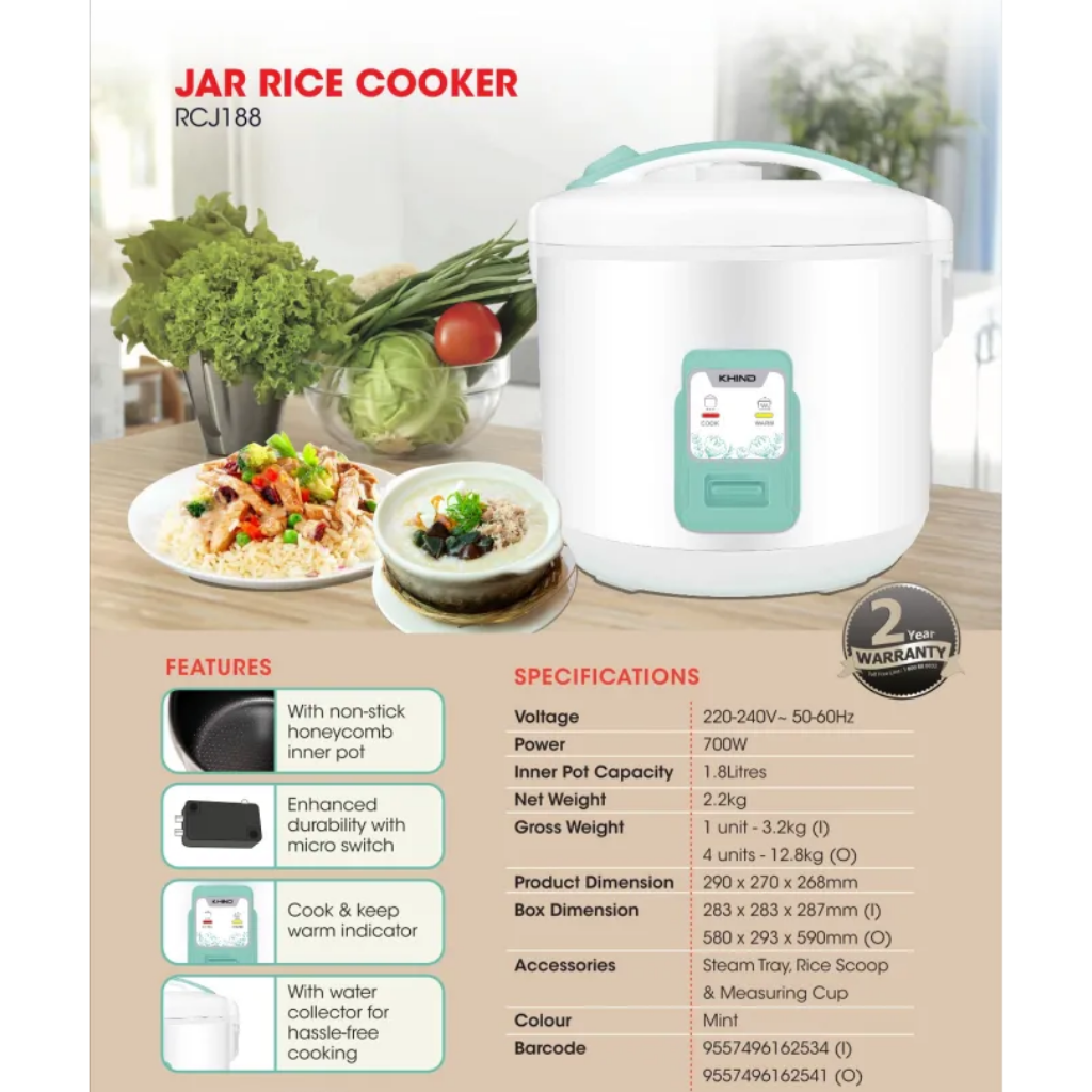 Khind 1.8L Rice Cooker 700W RCJ188