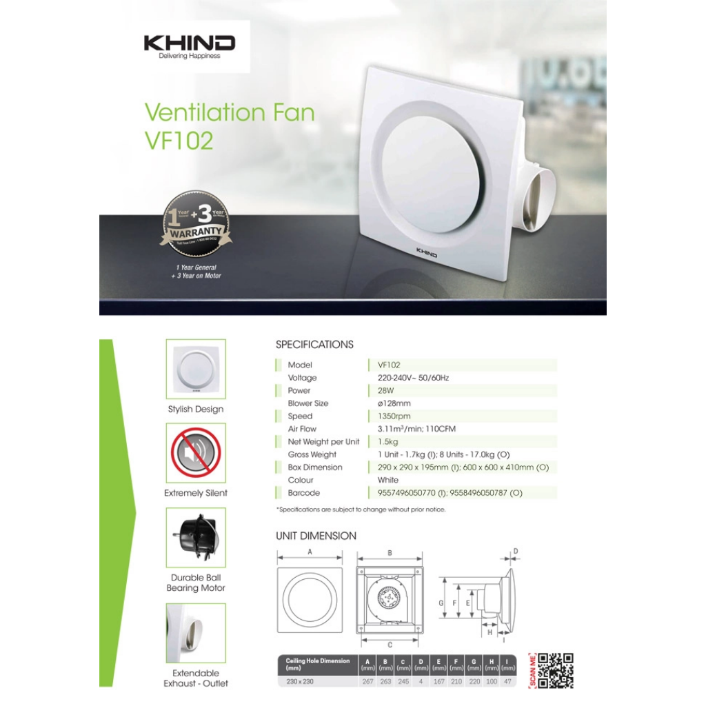 Khind 10” Ceiling Ventilation Fan VF102