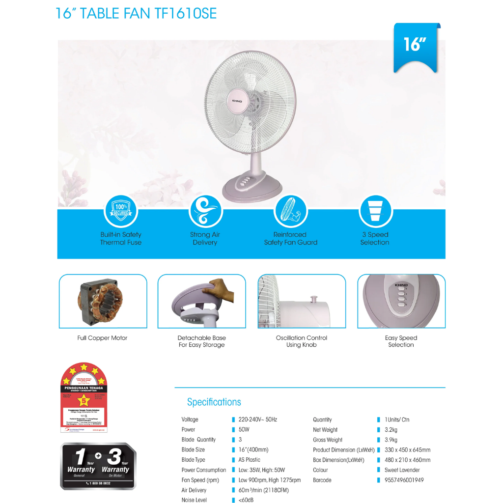 Khind 16” table Fan TF-1610SE