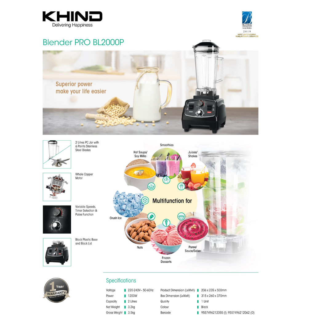 Features: • Stainless Steel Blades • Safety Lock Mechanism • Anti-Slip Footer • Overheat Protection • Multiple Speed Selection • Warranty: 1 Year General Warranty