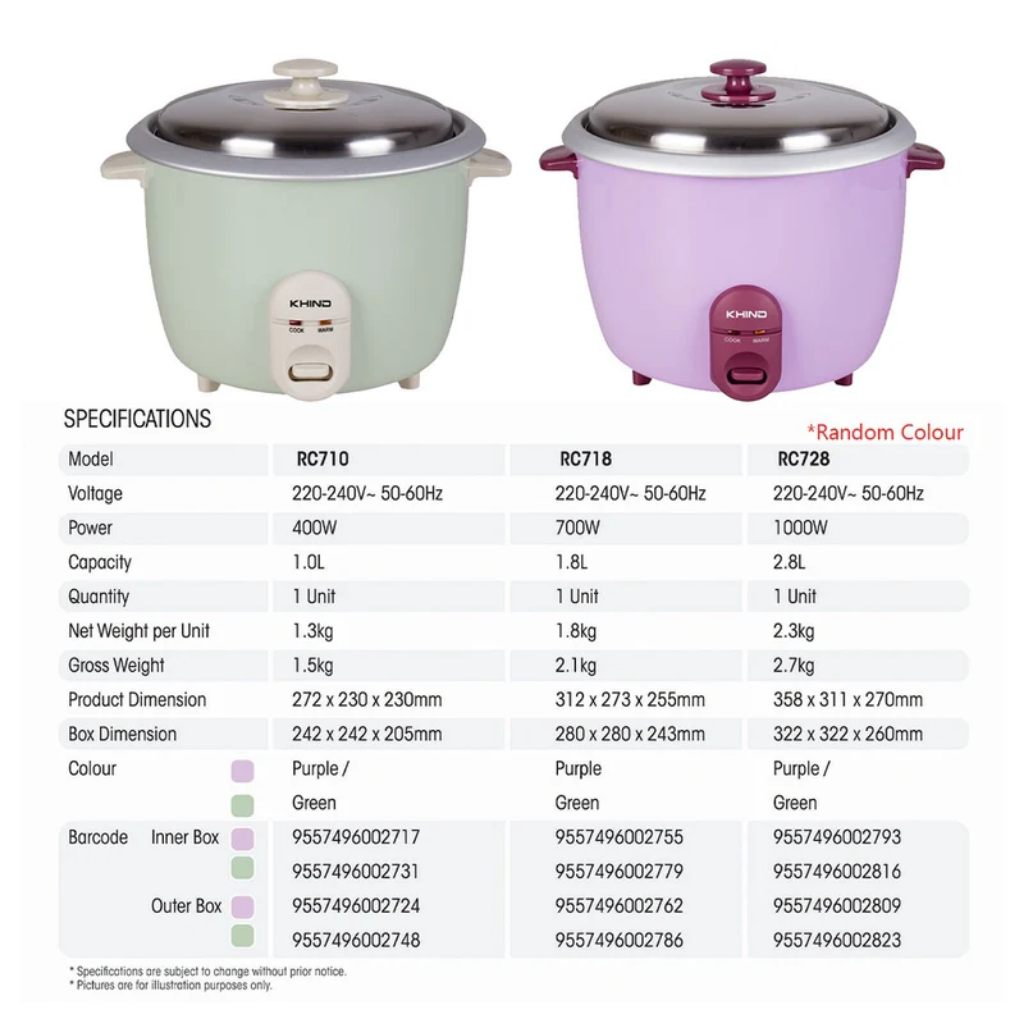 Khind 2.8L Electric Rice Cooker 1000W RC728