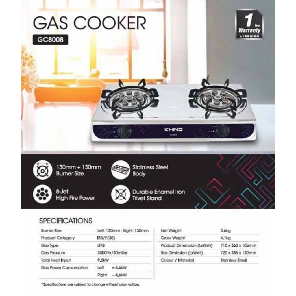 Khind 4.6Kw Jet High Fire Power Gas Cooker GC8008
