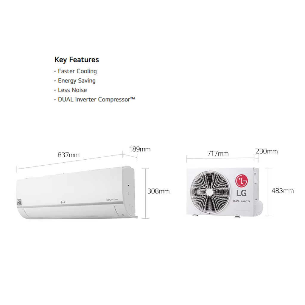 • 1.0HP Cooling Capacity (Deluxe Series). • UVnano™ technology sterilizes the fan by 99.99%. • Plasmaster™ Ionizer++ removes impurities. • Dual Inverter Compressor™. • ThinQ™ Wi-Fi control. • **Warranty: 1 Year General Warranty, 10 Years Compressor Warranty.**