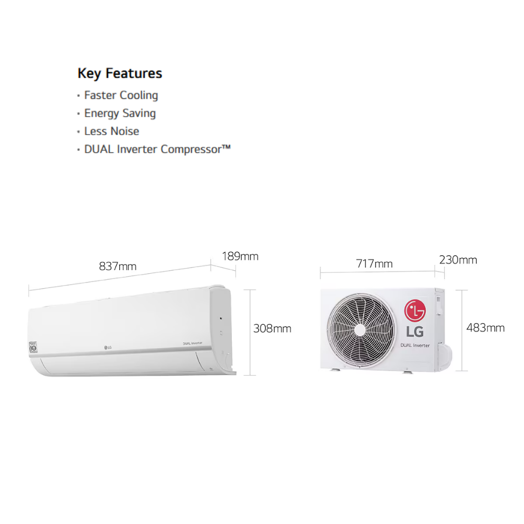 • 1.0HP Indoor Unit • Dual Inverter Compressor technology. • 4-Way Swing for even air distribution. • Fast Cooling mode. • Gold Fin™ anti-corrosion coating. • **Warranty: 1 Year General Warranty, 10 Years Compressor Warranty.**