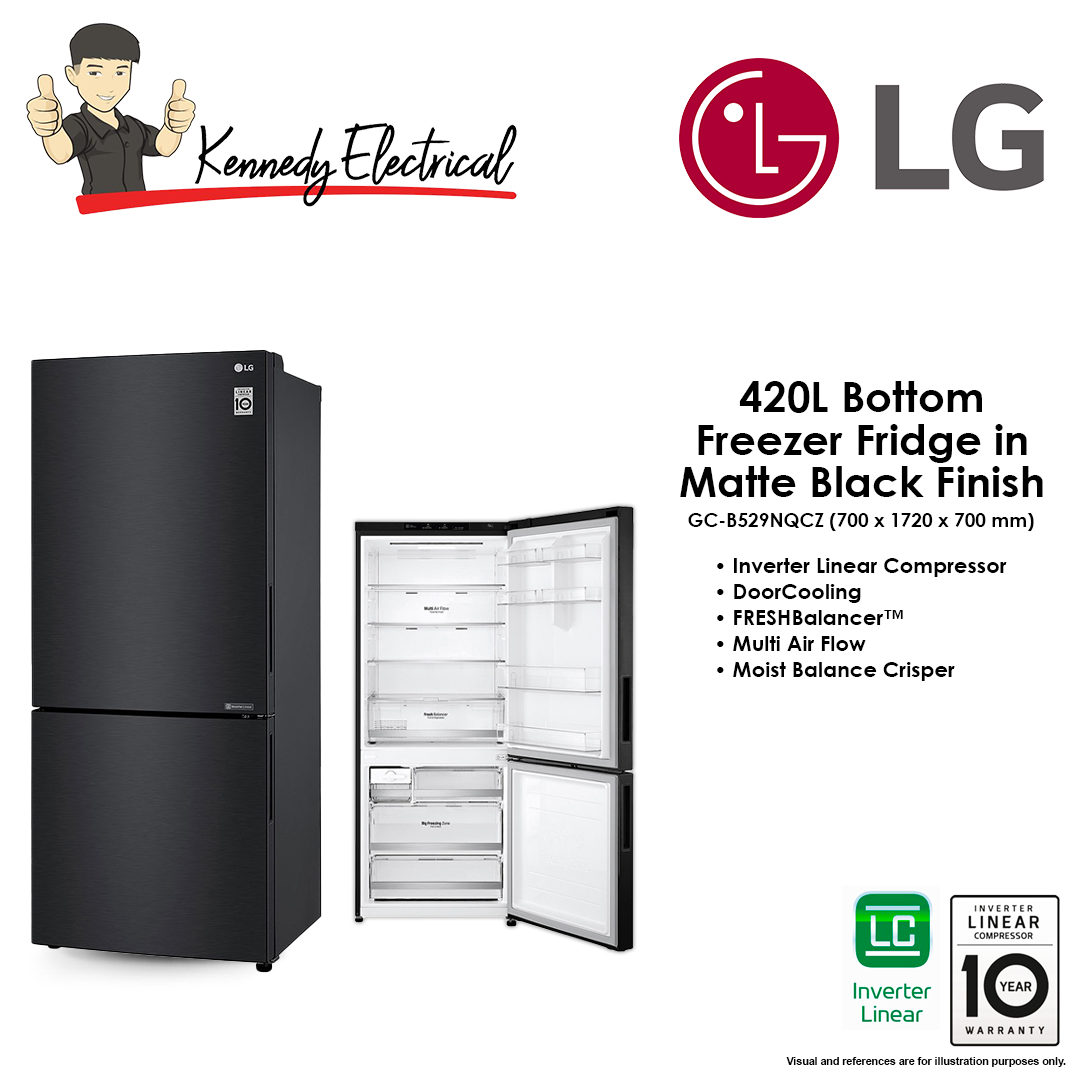 Lg 420L Bottom Freezer Fridge In Matte Black Finish GC-B529NQCZ