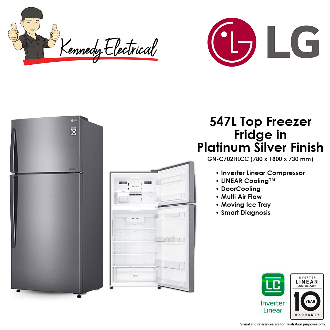 Lg 547L Top Freezer Fridge In Platinum Silver Finish GN-C702HLCC