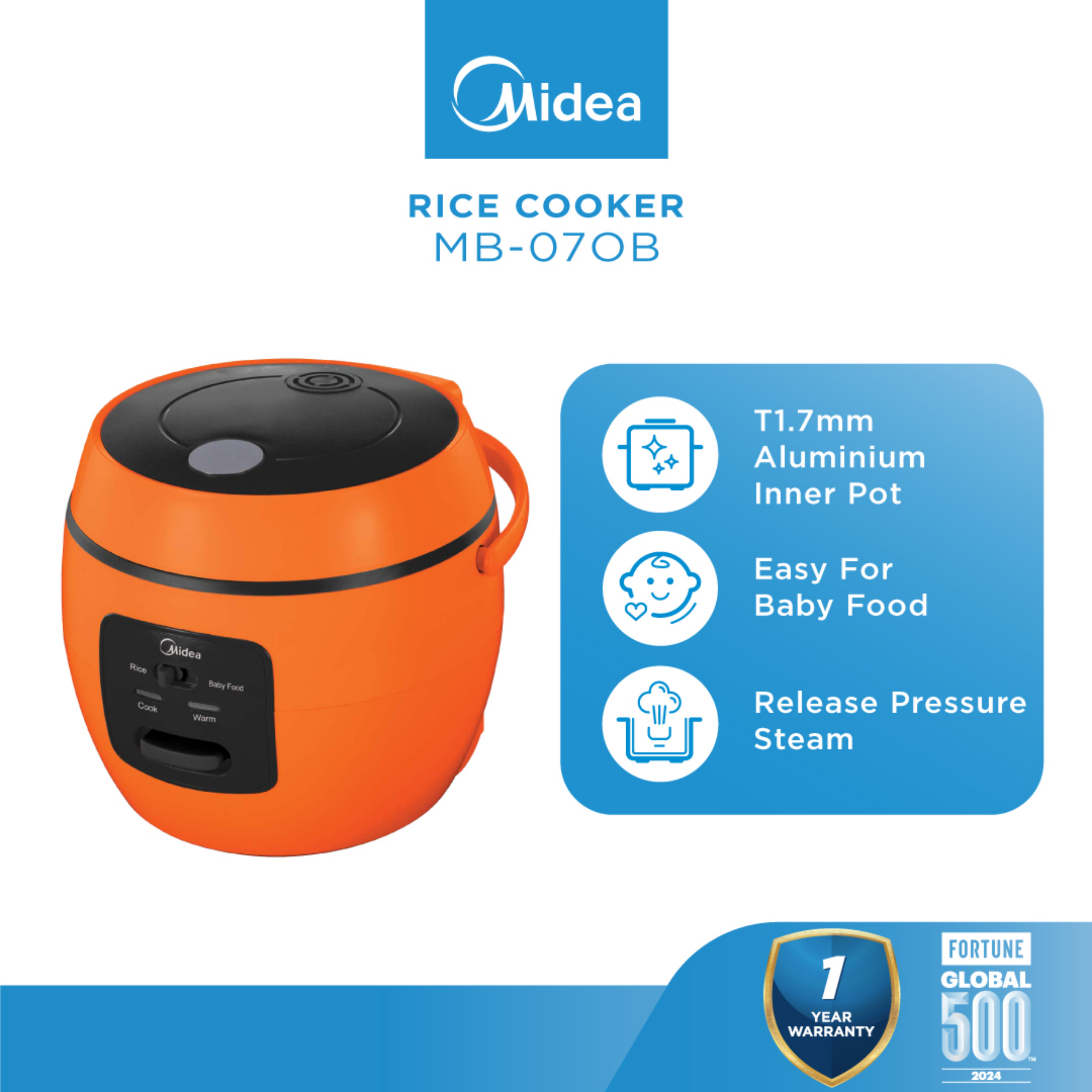 Midea 0.8L Mini Jar Compact Rice Cooker (Orange) MB-07OB