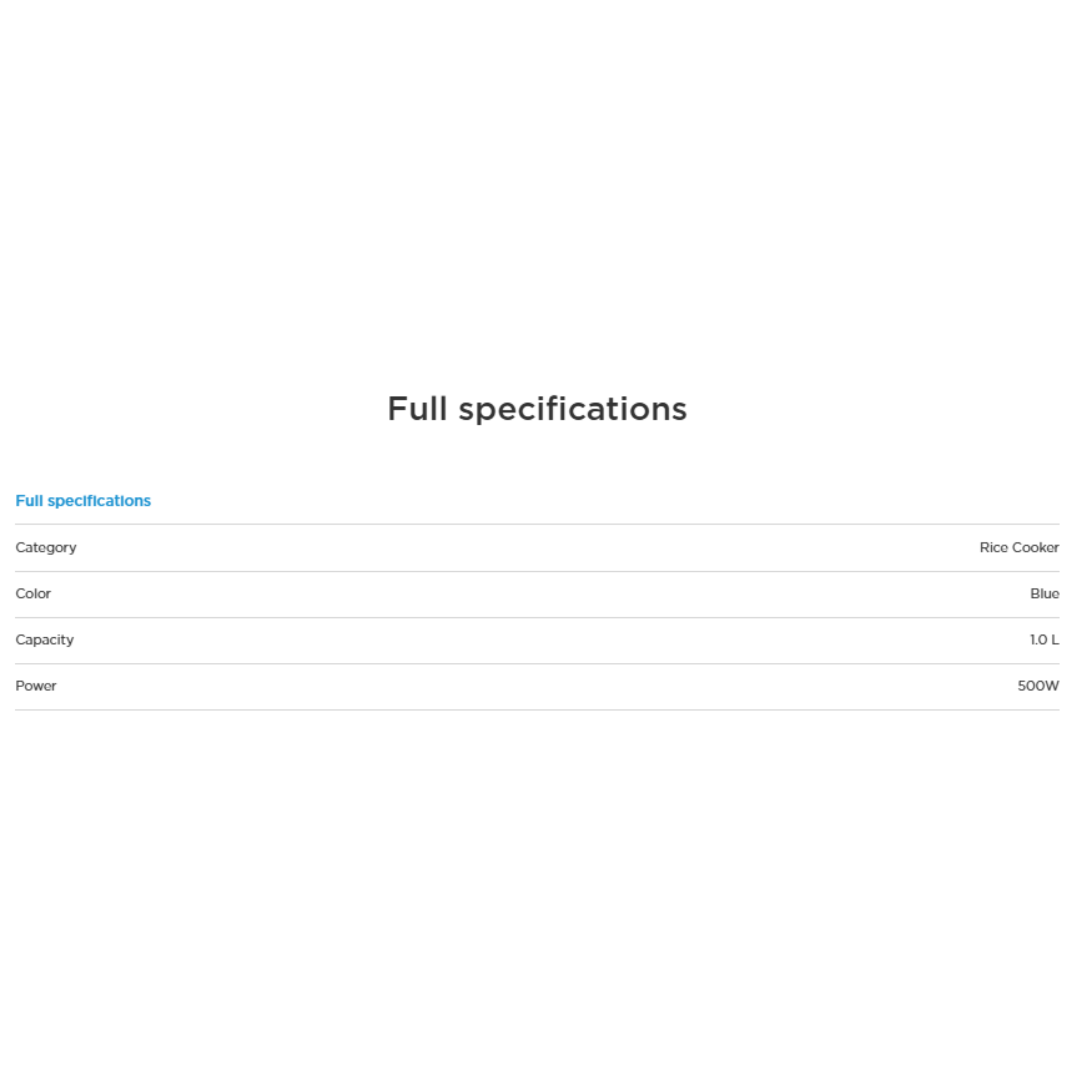 Midea 1.0L Conventional Rice Cooker MR-GM10SDA-B Features: - Capacity: 1.0L - Simple Operation - Keep Warm Function - Aluminium Inner Pot Warranty: 1 Year General Warranty