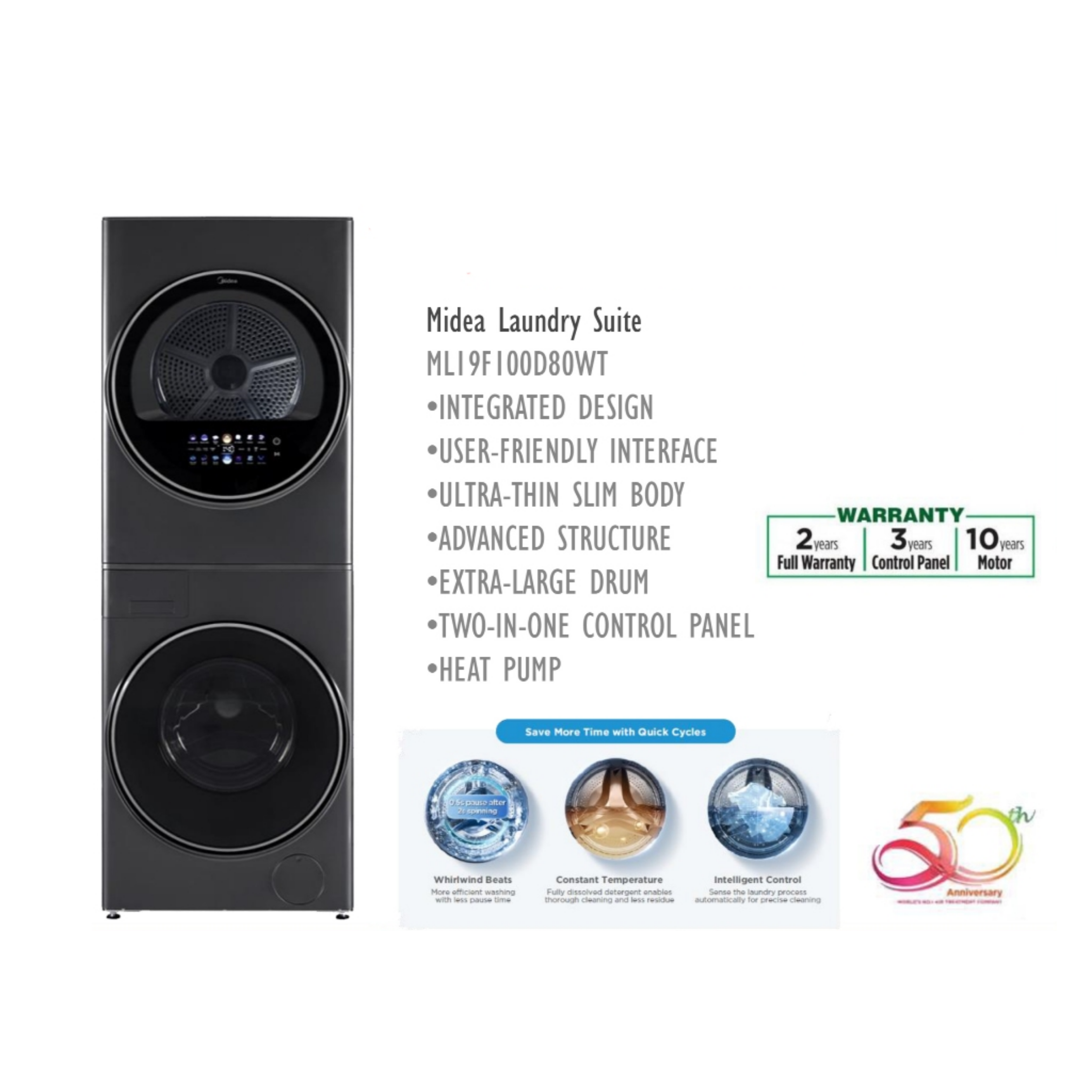 Midea 10.0Kg / 8.0Kg Laundry Suite Washer Dryer 2025 (Washer) ML19F100D80WT