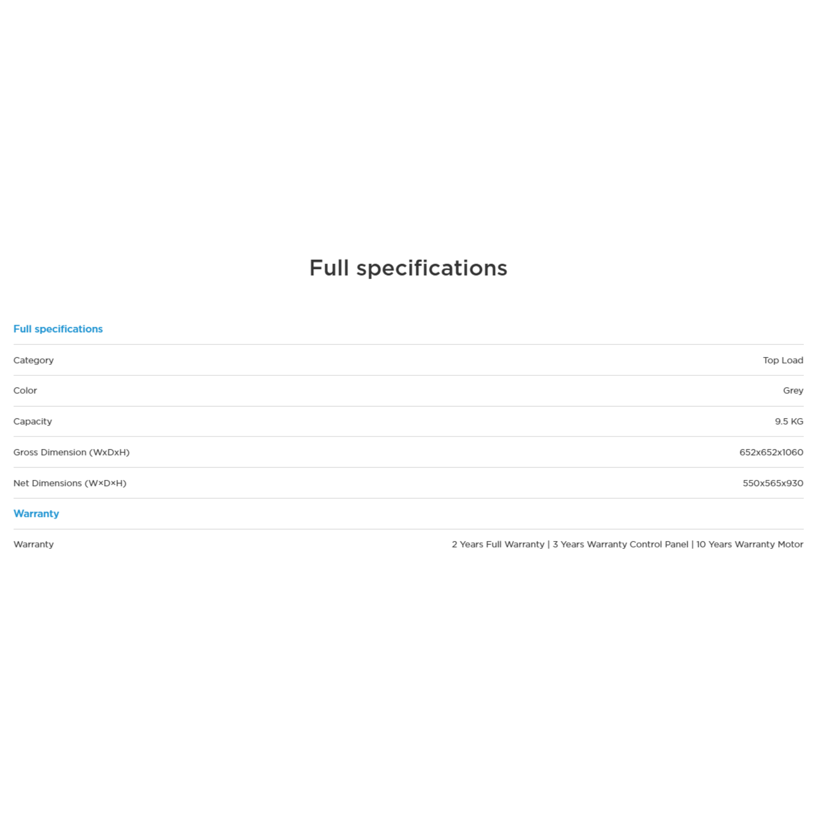 Midea 10.5Kg 102 Series Top Load Fully Auto Washing Machine MA102W105