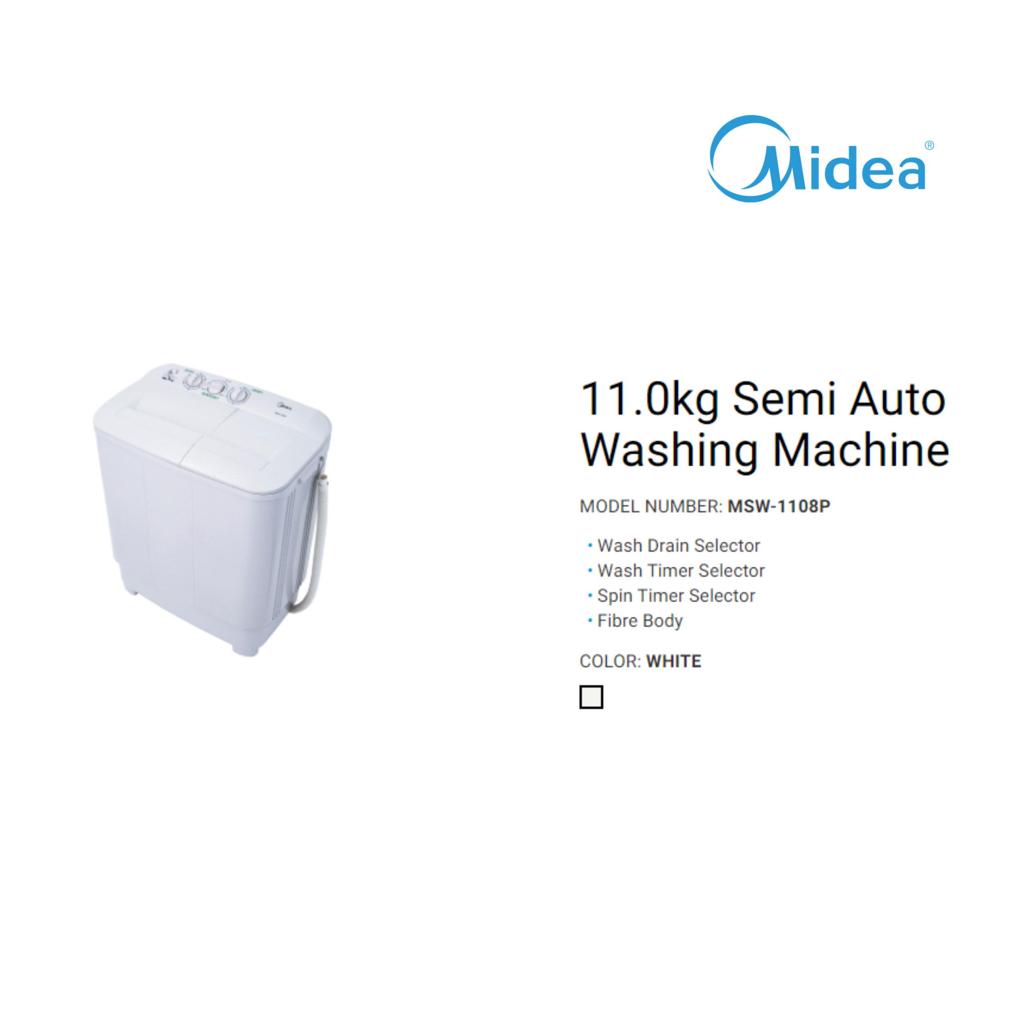 Midea 11.0Kg 8P Series Semi Auto Washing Machine MSW-1108P