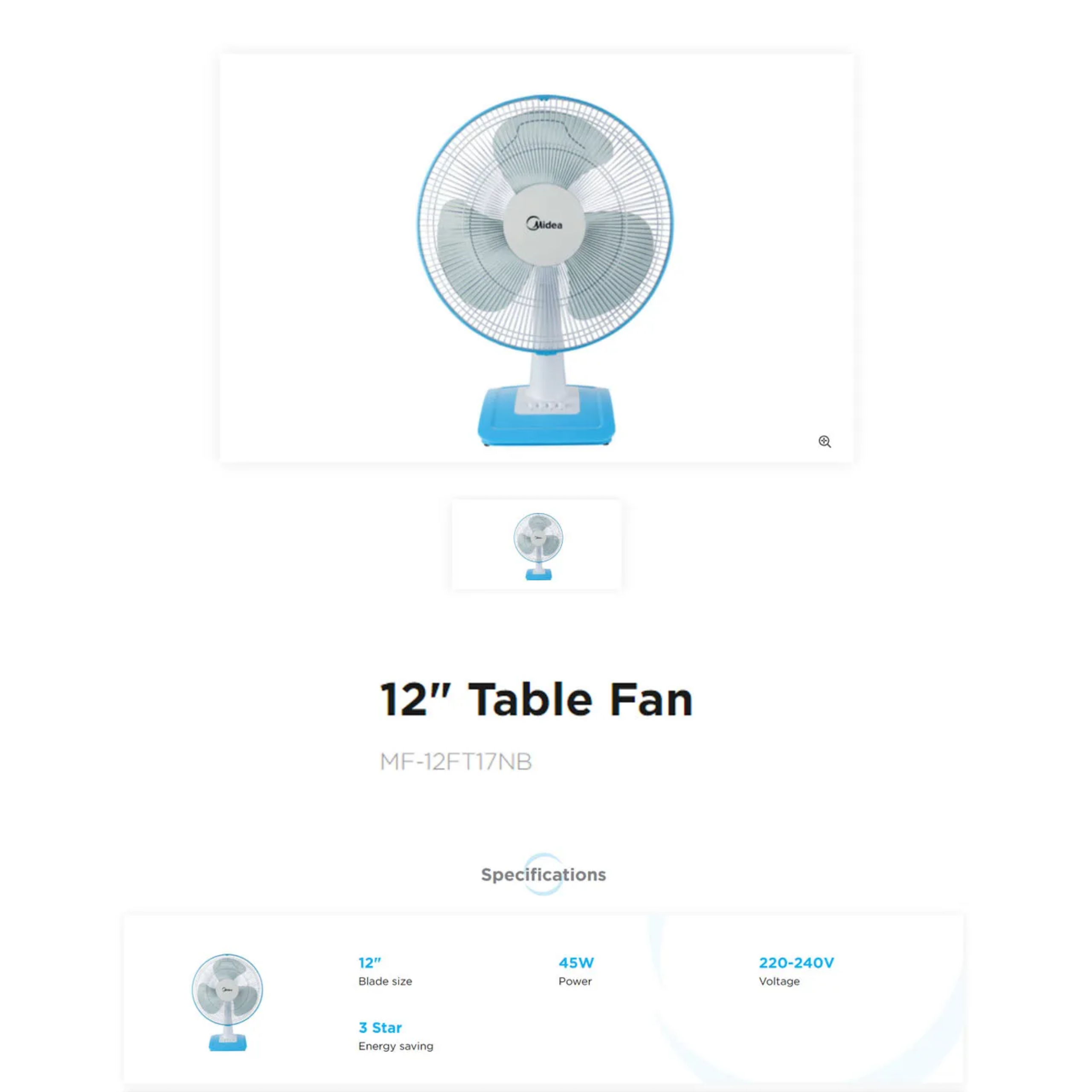 Midea 12" Table Fan With 3 Speed MF-12FT17NB