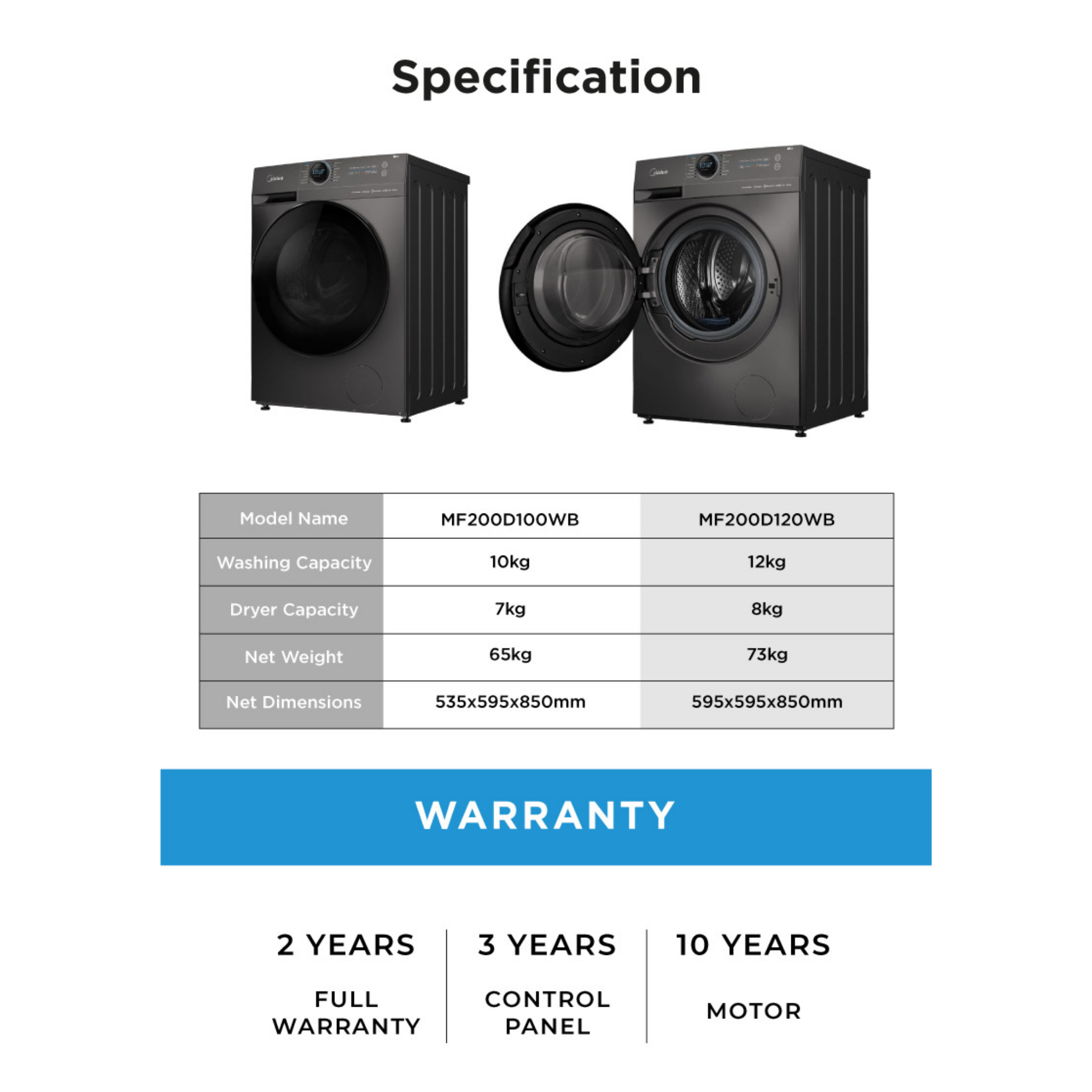 Midea 12.0Kg / 8.0Kg Inverter Quattro Washer Dryer Combo MF200D120WB