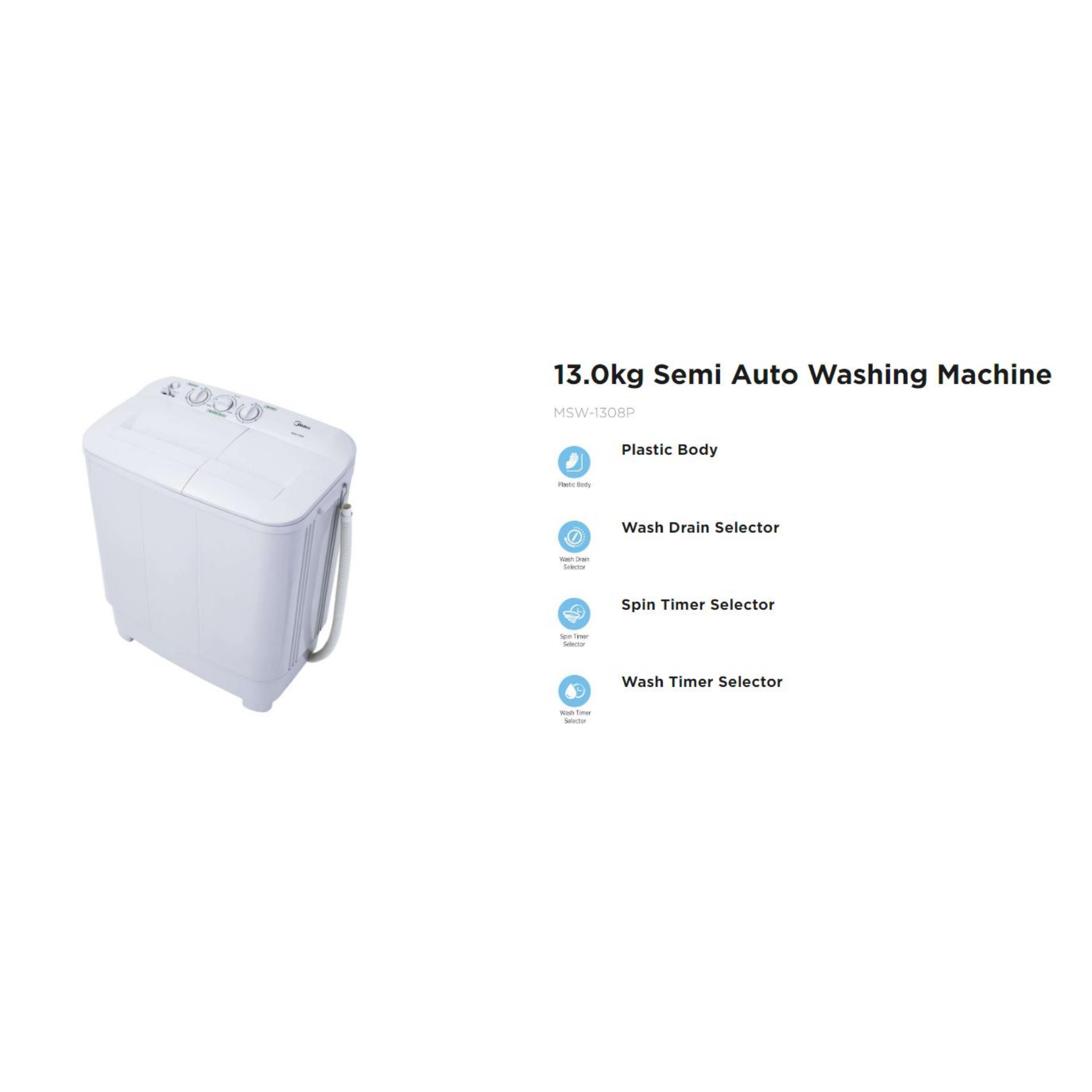 Midea 13.0Kg Semi Auto Washing Machine MSW-1308P