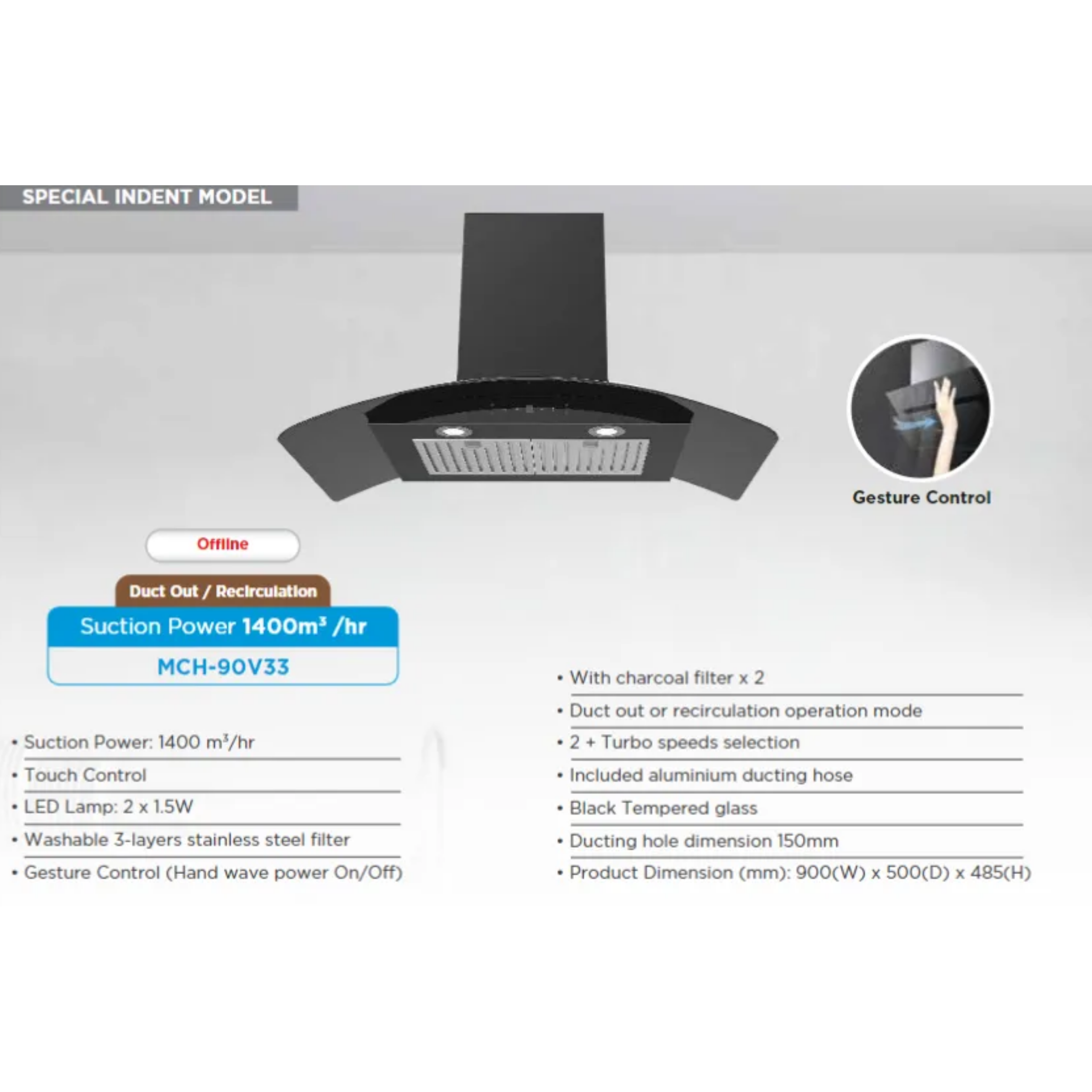 Midea 1400M3/Hr Cooker Hood MCH-90V33