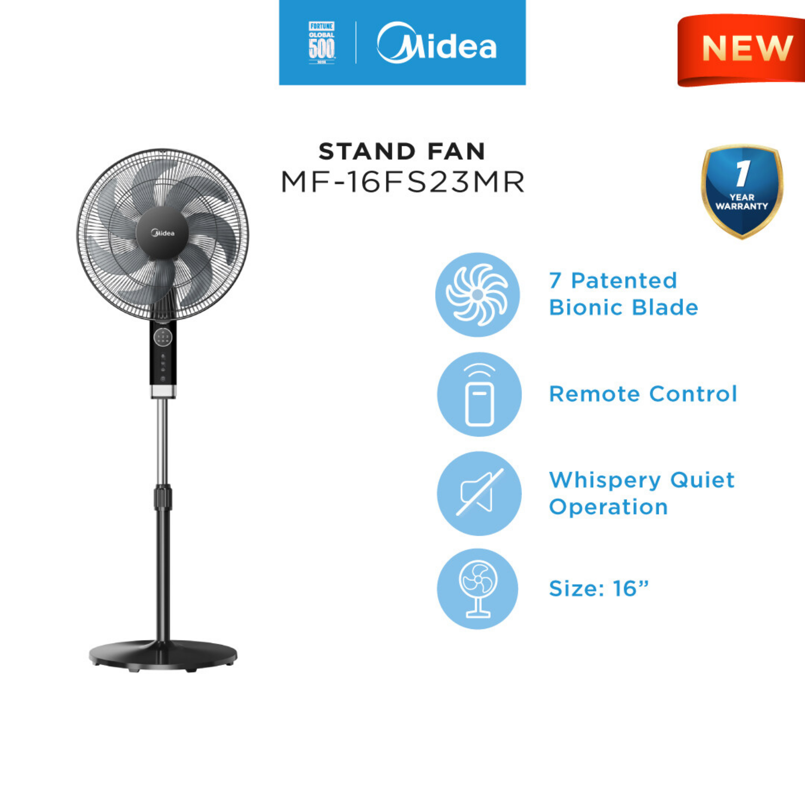 Midea 16" Stand Fan With 3 Speed MF-16FS23MR
