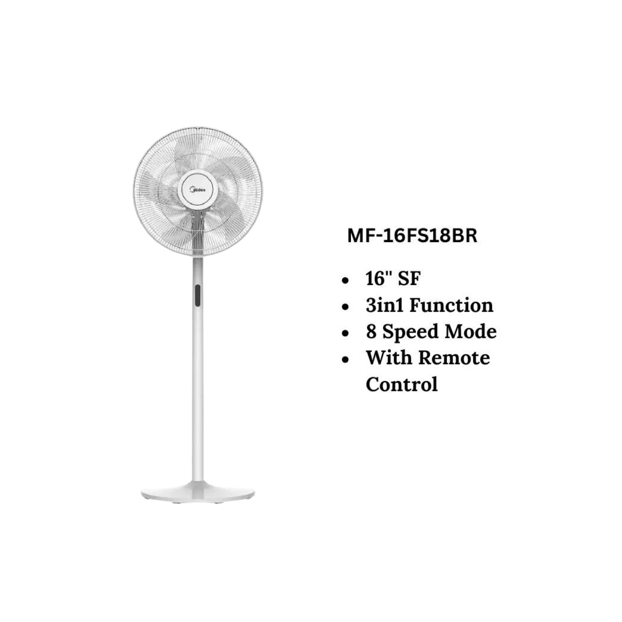 Midea 16" 2 In 1 Stand Fan With 5 Blades, 8 Speed Levels, Timer & Remote Control (White) MF-16FS18BR