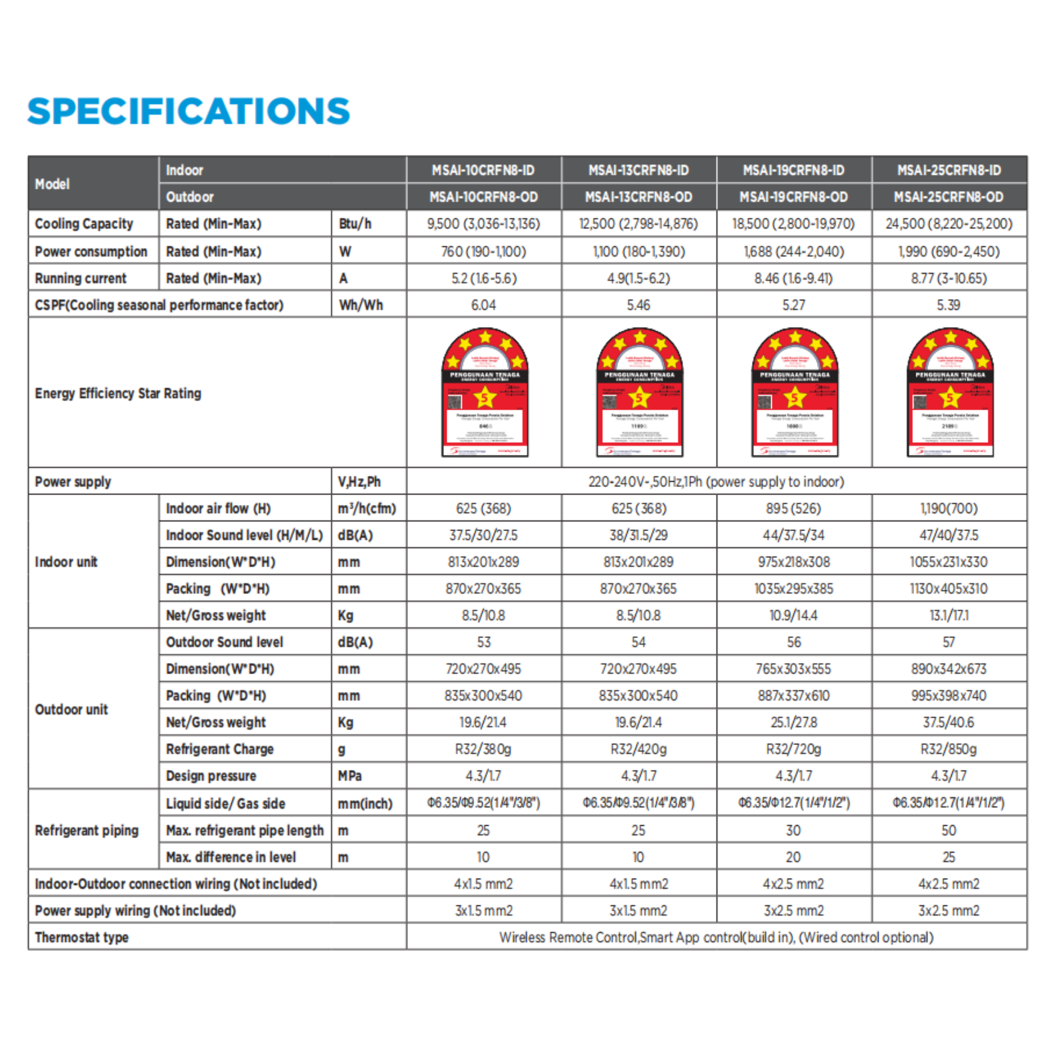 Midea 2.5HP Avigator Series Inverter Air Conditioner MSAI-25CRFN8 Features: - Capacity: 2.5HP - AI Ecomaster Energy Saving - Cool Flash Fast Cooling - I-Clean Self Cleaning - Air Magic Air Purification - Inverter Technology Warranty: 3 Years General Warranty, 10 Years Compressor Warranty