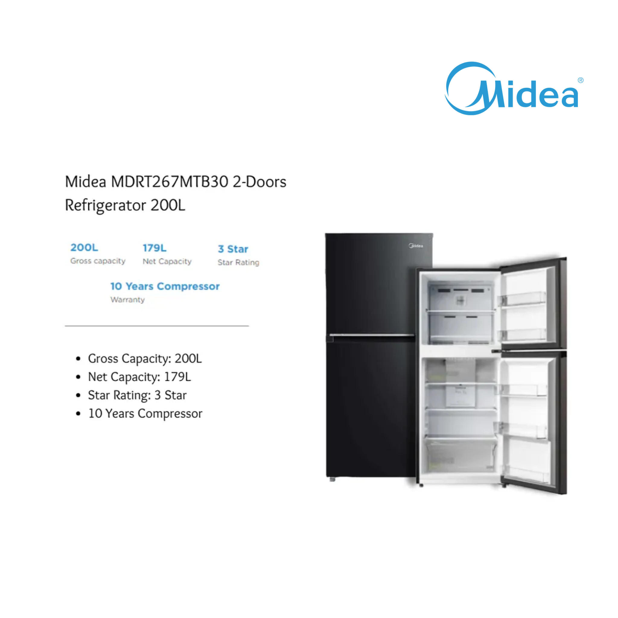 Midea 200L 2 Door Refrigerator MDRT267MTB30