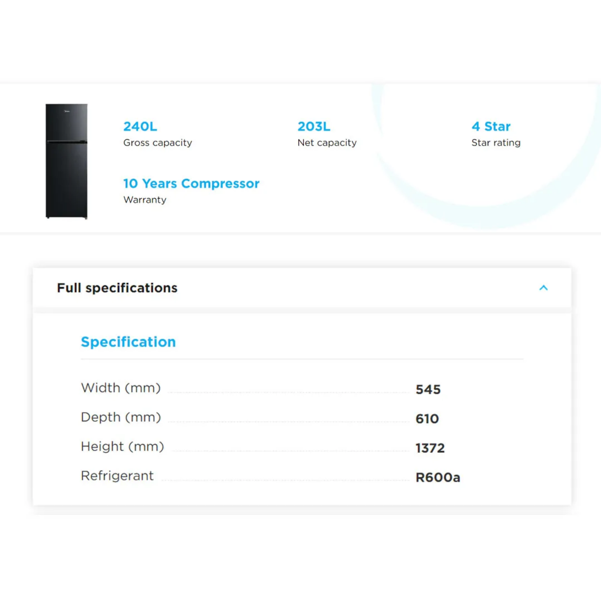 Midea 240L 2 Door Refrigerator MDRT306MTB30
