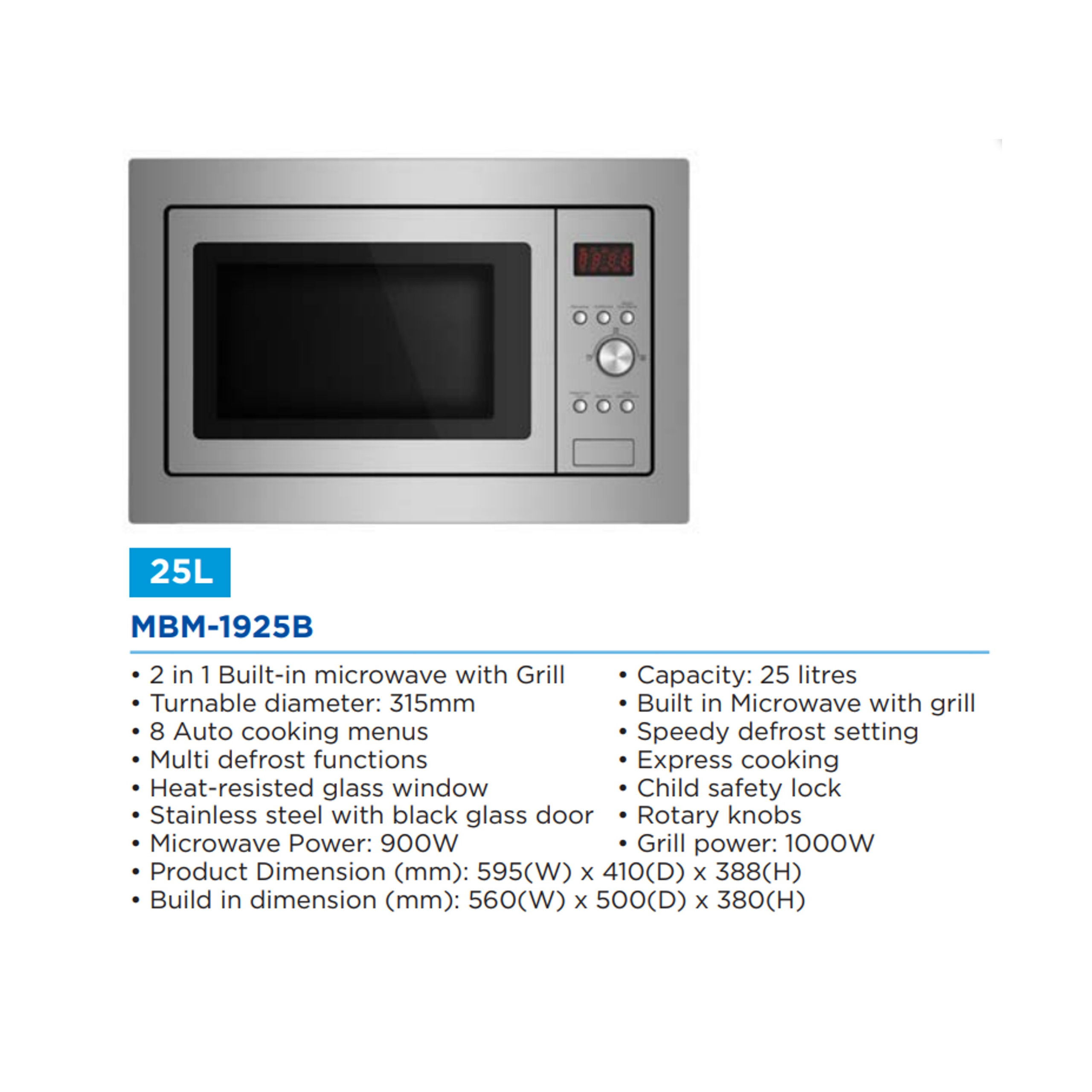 Midea 25L Built In Microwave Oven With Grill Power 1000W MBM-1925B