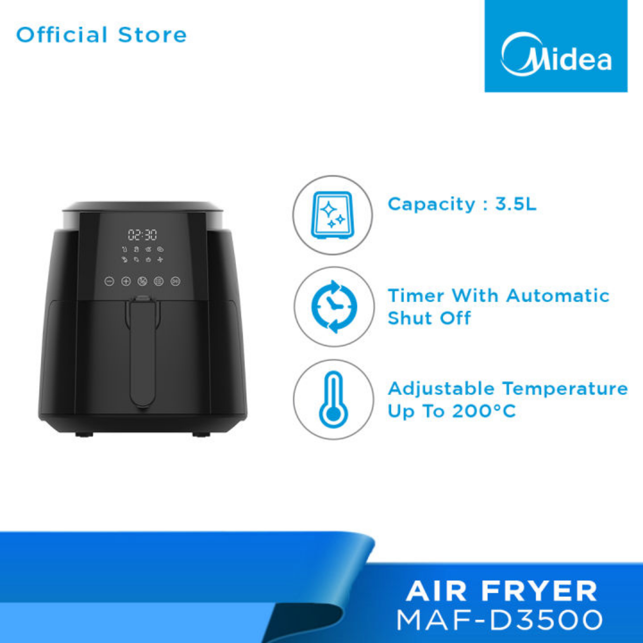 • Capacity: 3.5L • Type: Air Fryer • Features: Oil-Free Frying, Digital Display, Timer, Overheat Protection • Warranty: 1 Year General Warranty