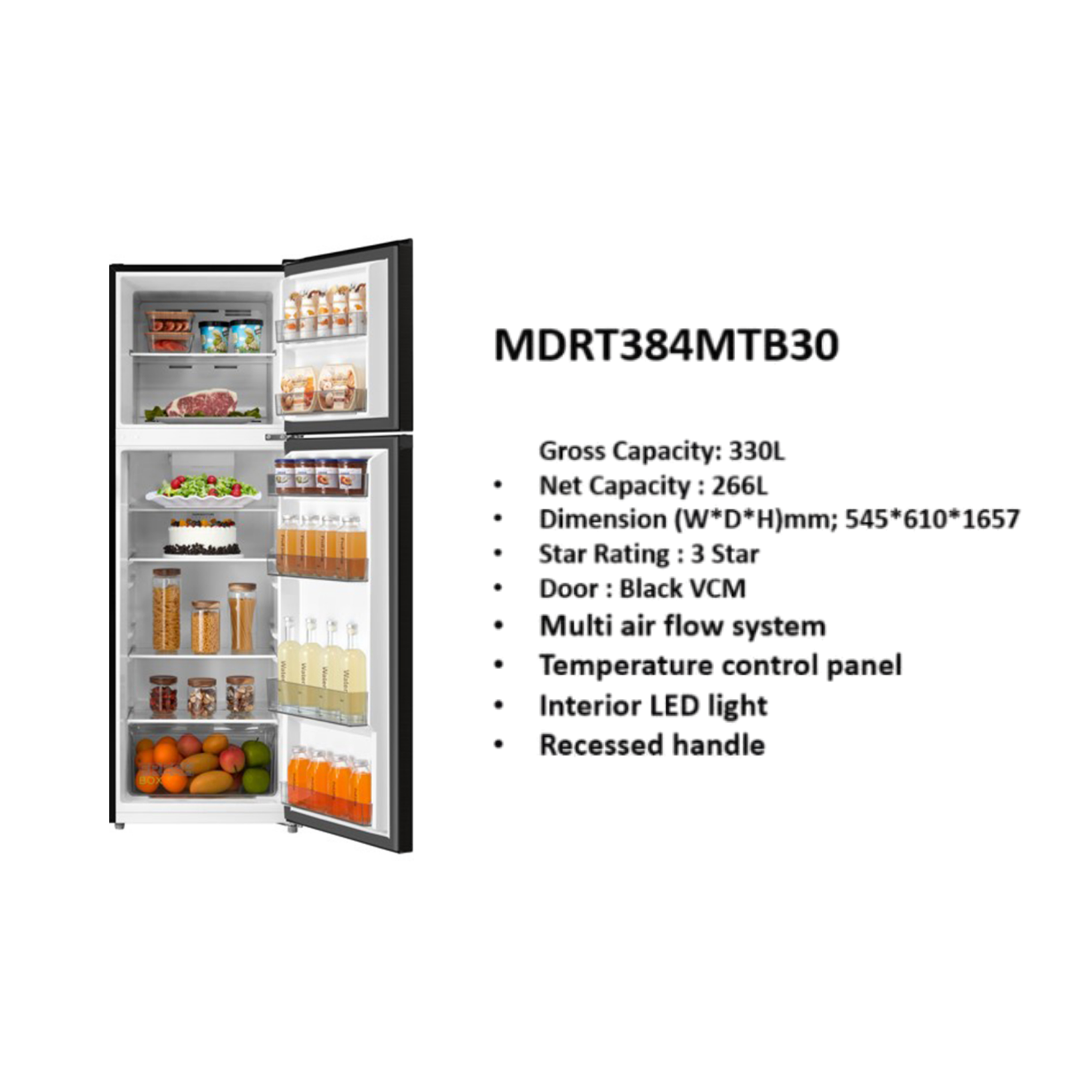 • Multi Air Flow System • Temperature Control System • Interior LED Light • Recessed Handle
