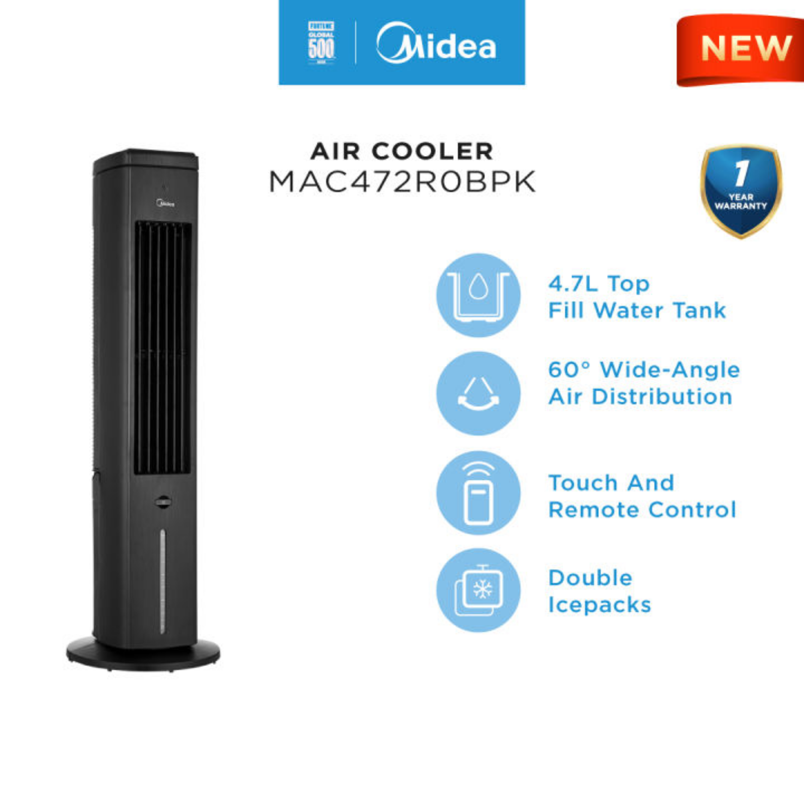 Midea 4.7L Air Cooler MAC472R0BPK Features: - Capacity: 4.7L - 3 Speed Fan - Aromatherapy Box - Remote Control Warranty: 1 Year General Warranty