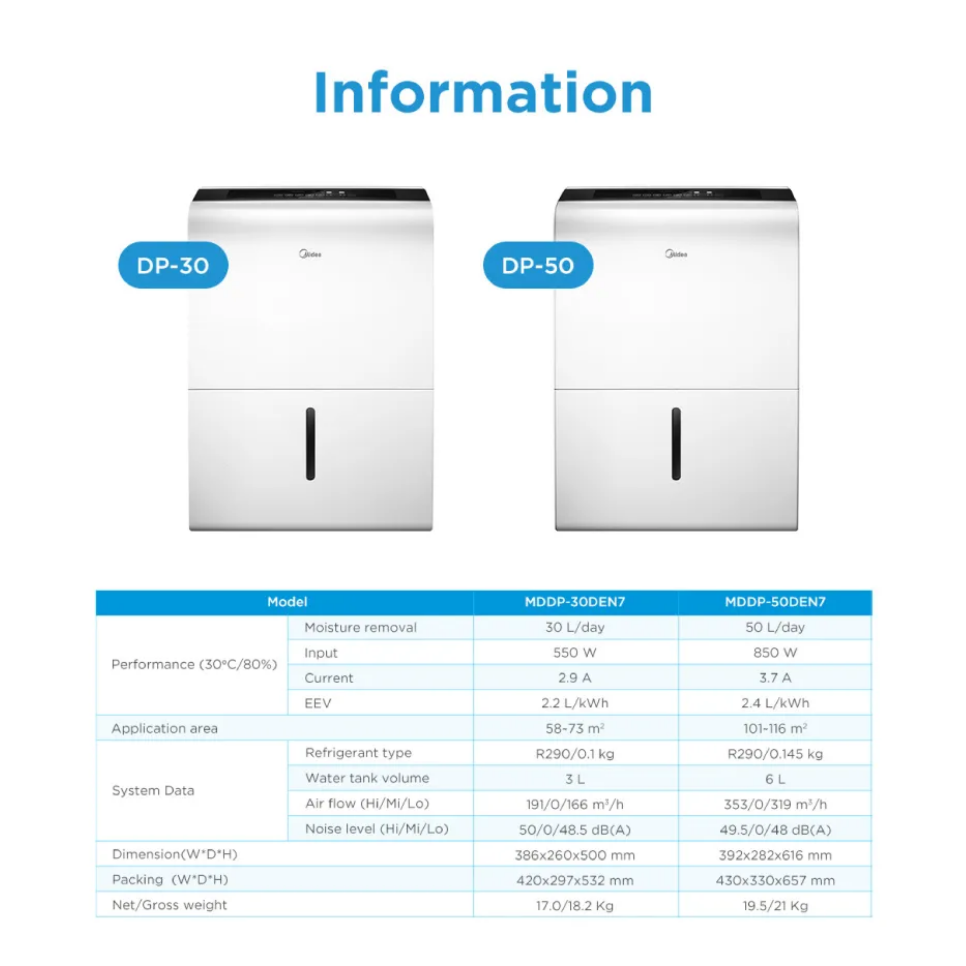 Midea 50L Smart Dehumidifier MDDP-50DEN7 Features: - Capacity: 50L/Day - Smart Humidity Control - Pump Drainage System - Smart Control (App Supported) - Large Coverage Area - Portable with Castor Wheels Warranty: 1 Year General Warranty