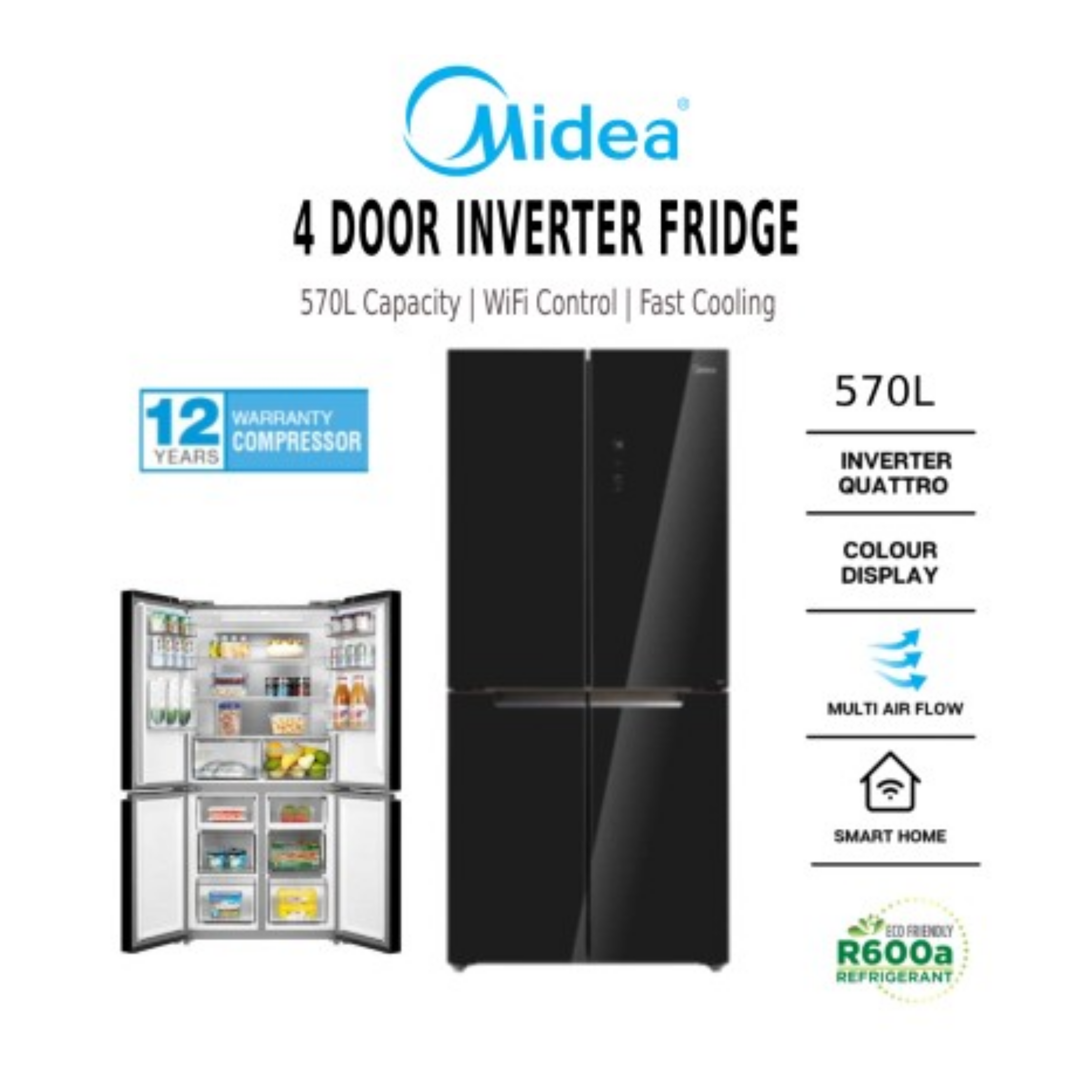 Midea 519L Multi Door Refrigerator MDRF633MIF22 Features: - Capacity: 519L - Inverter Quattro - Platinum Fresh - Multi Air Flow Warranty: 2 Years General Warranty, 12 Years Compressor Warranty