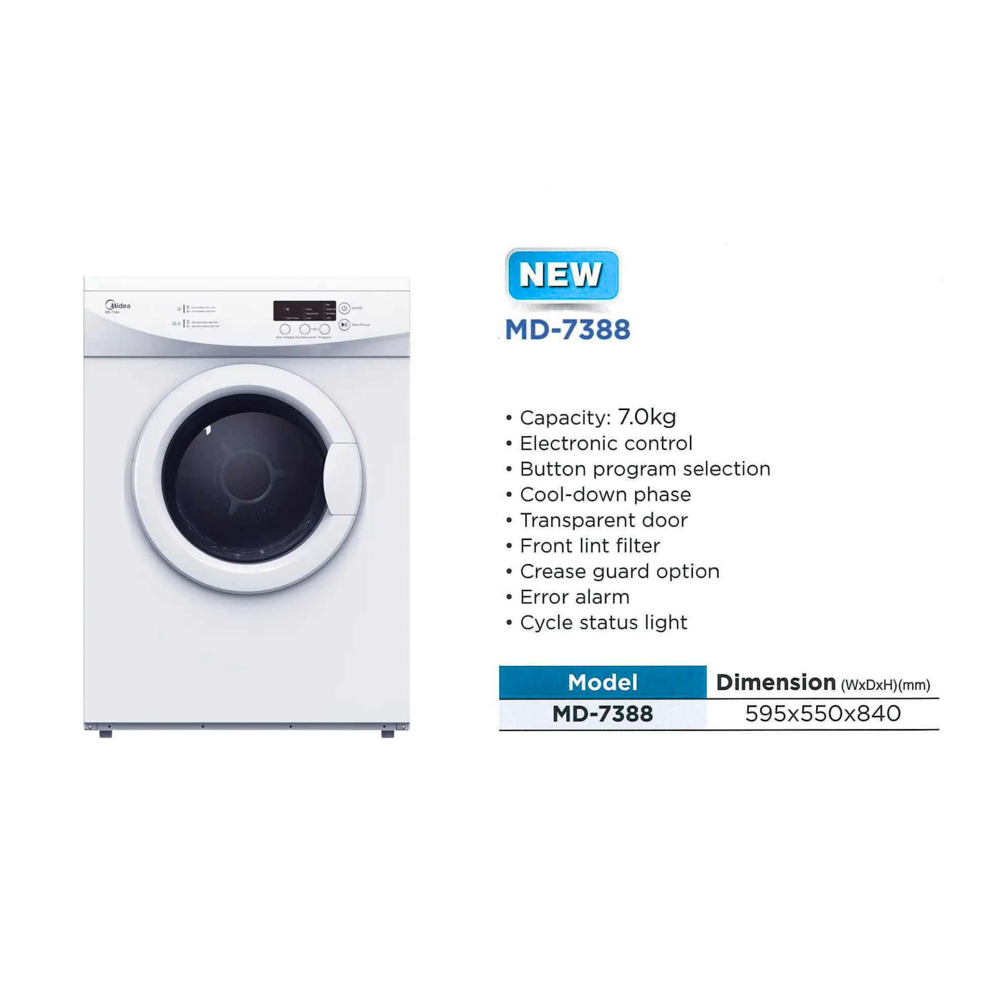 Midea 7.0Kg Air Vented Dryer MD-7388