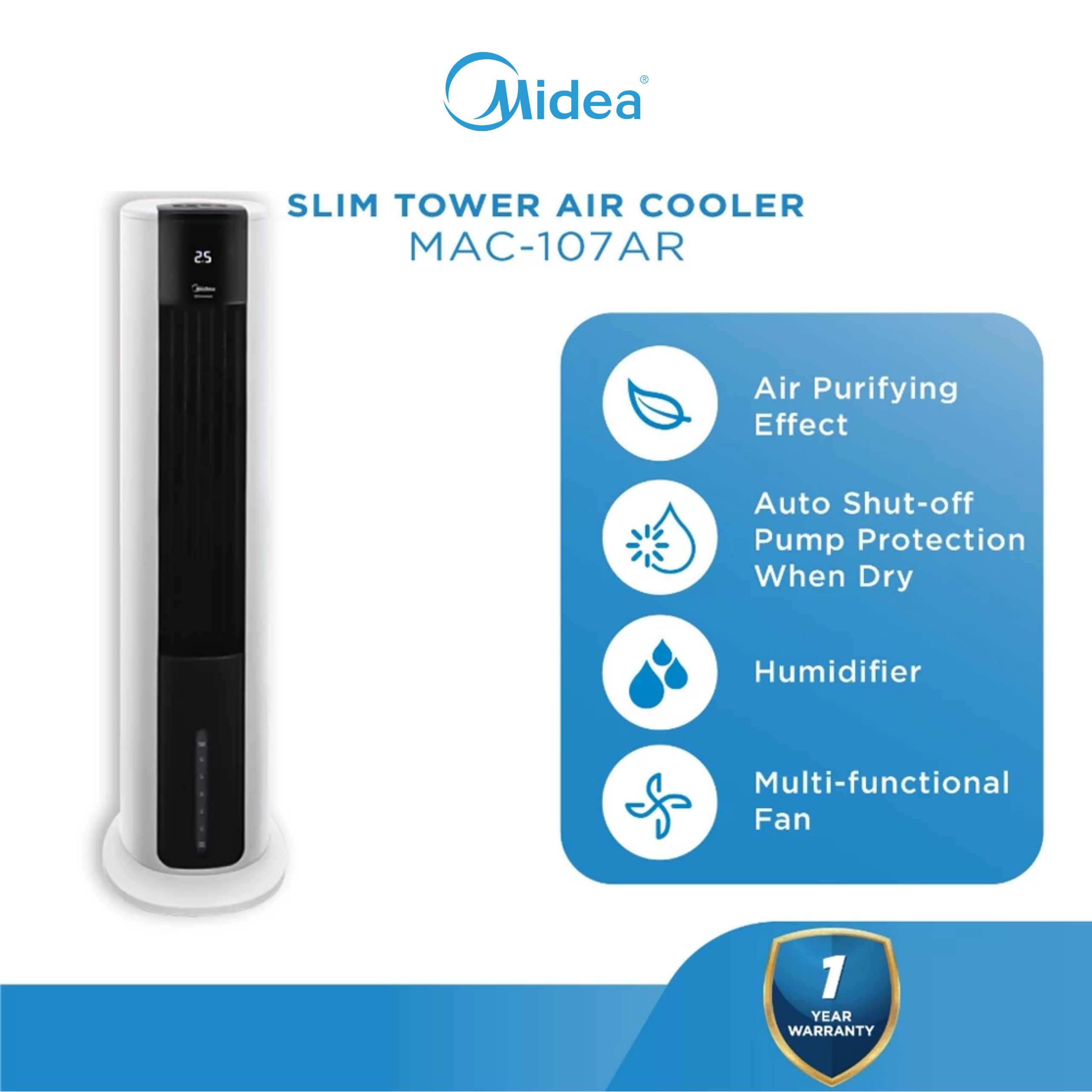 Midea 7.0L Slim Tower Air Cooler With 3 Speed Levels & Remote Control MAC-107AR