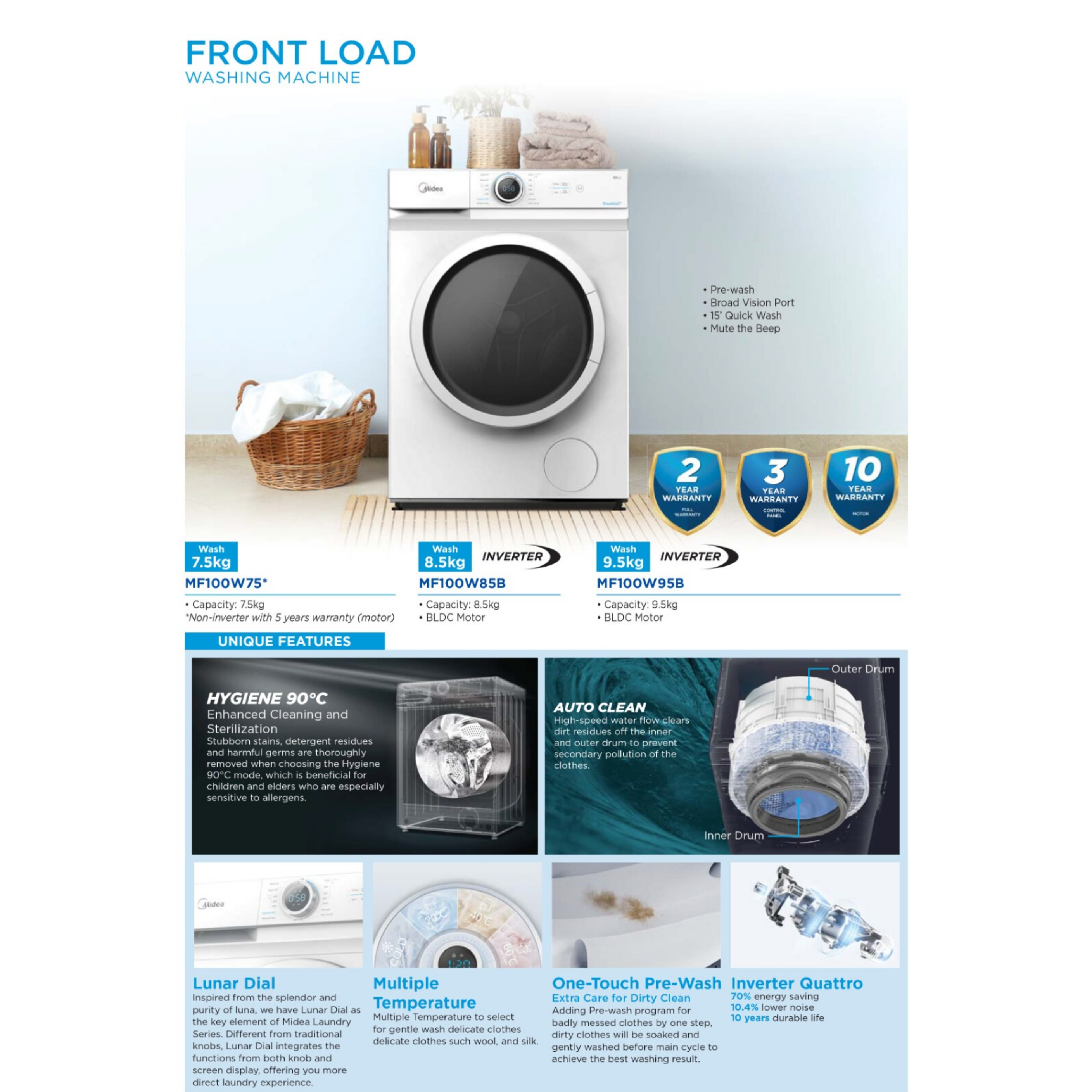 Midea 7.5Kg Luna Inverter Series Front Load Washer MF100W75B