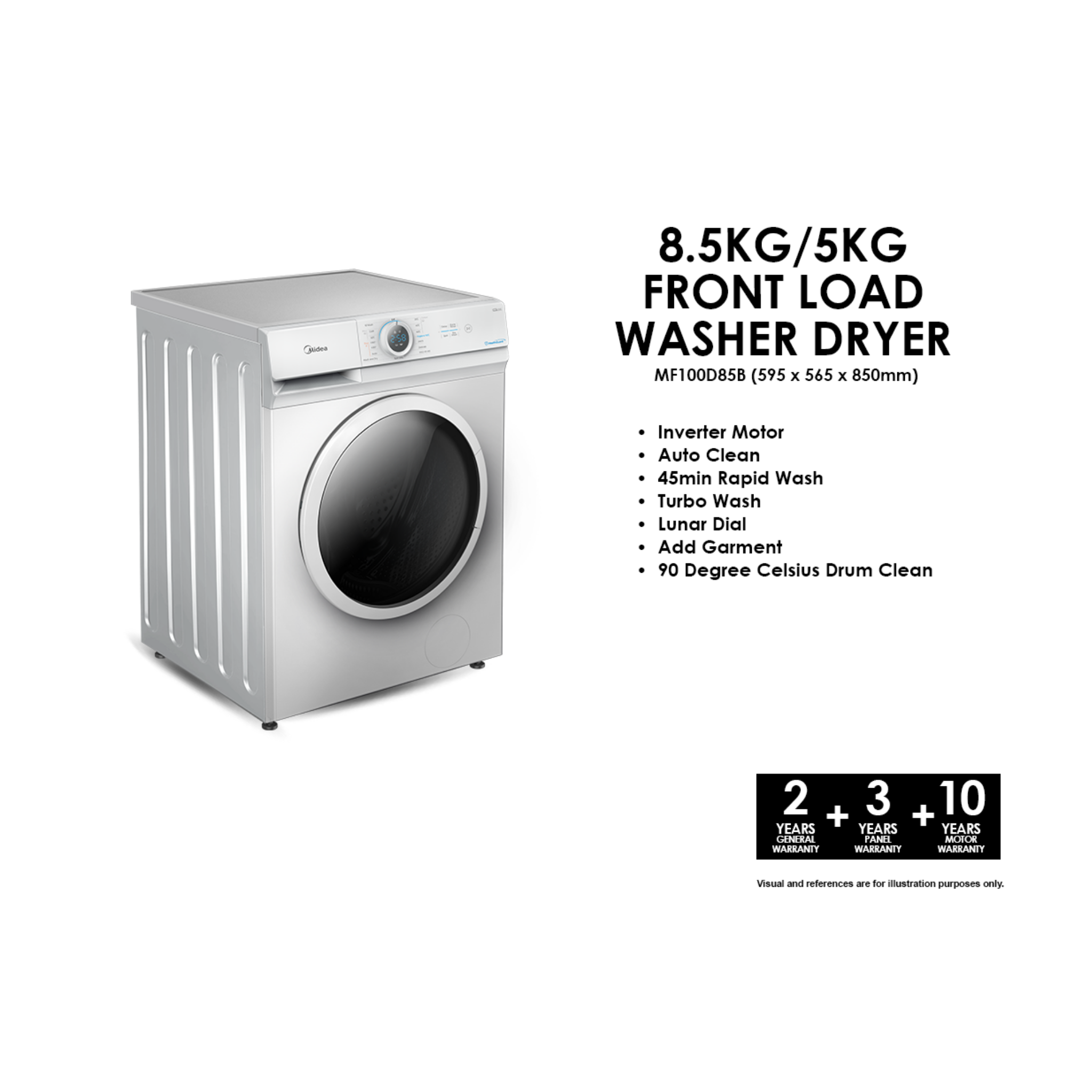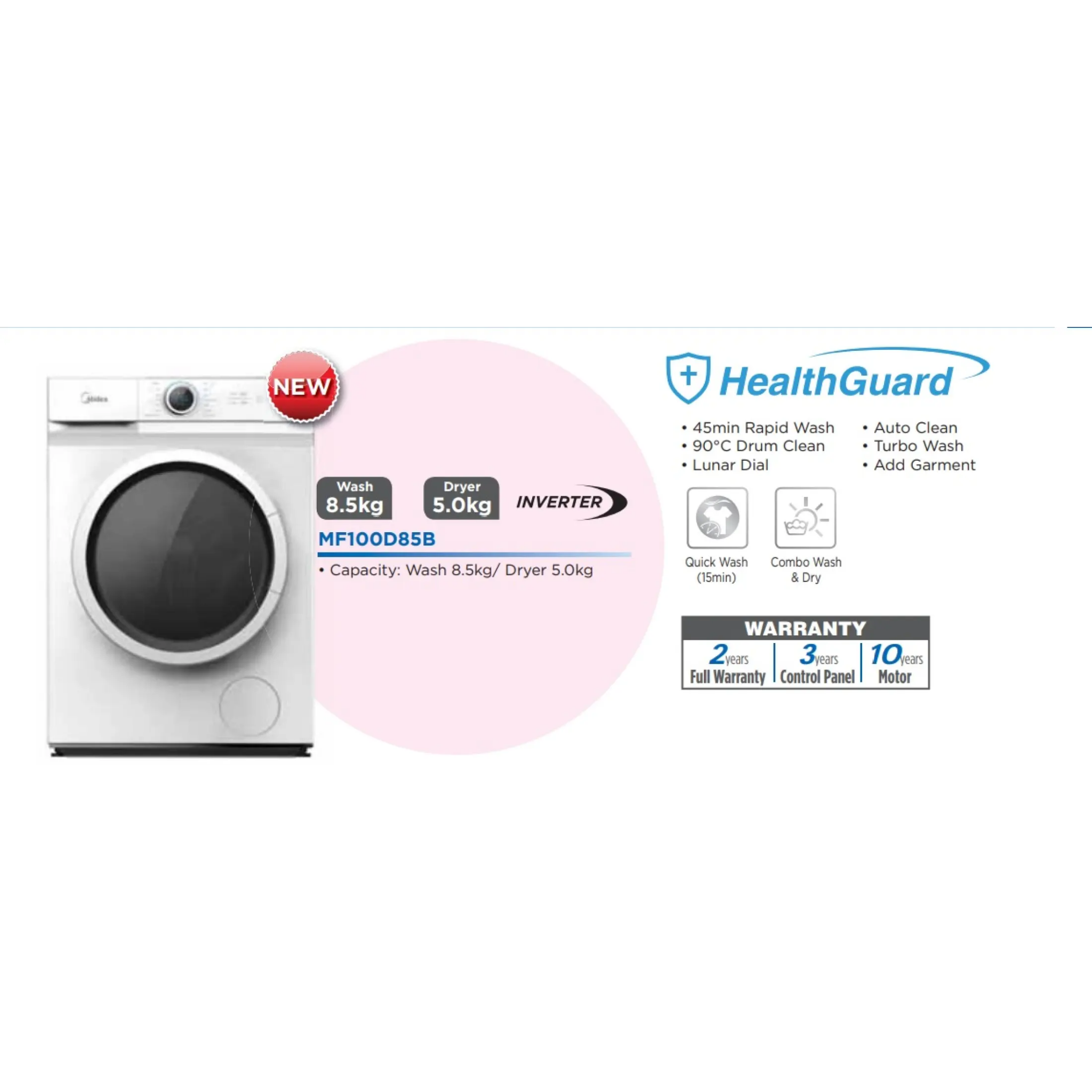 Midea 8.5Kg / 5.0Kg Inverter Washer Dryer Combo MF100D85B