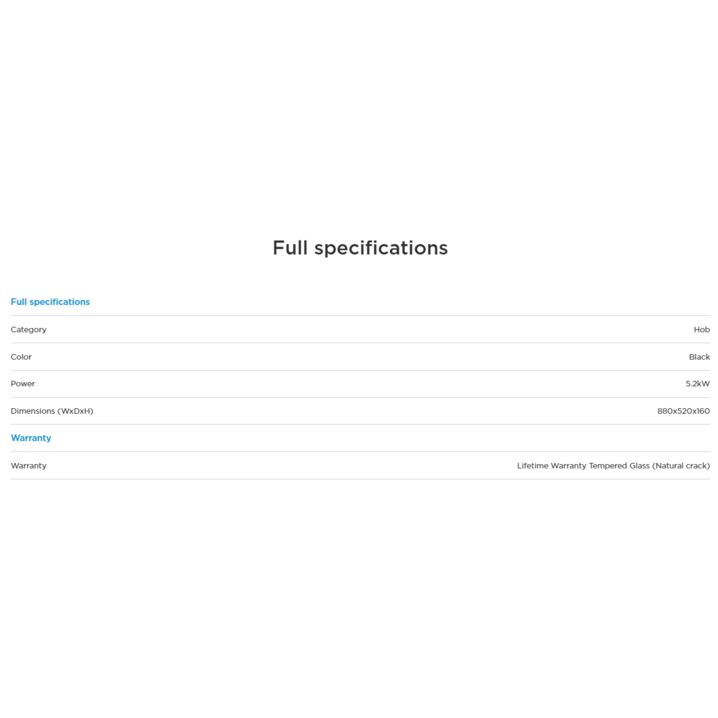 Midea Built-in Gas Hob MGH-9030GL Features: - High Efficiency Burners - Flame Failure Safety Device - Cast Iron Pan Support - Tempered Glass Top Warranty: 1 Year General Warranty, Lifetime Warranty on Tempered Glass (Natural Crack)