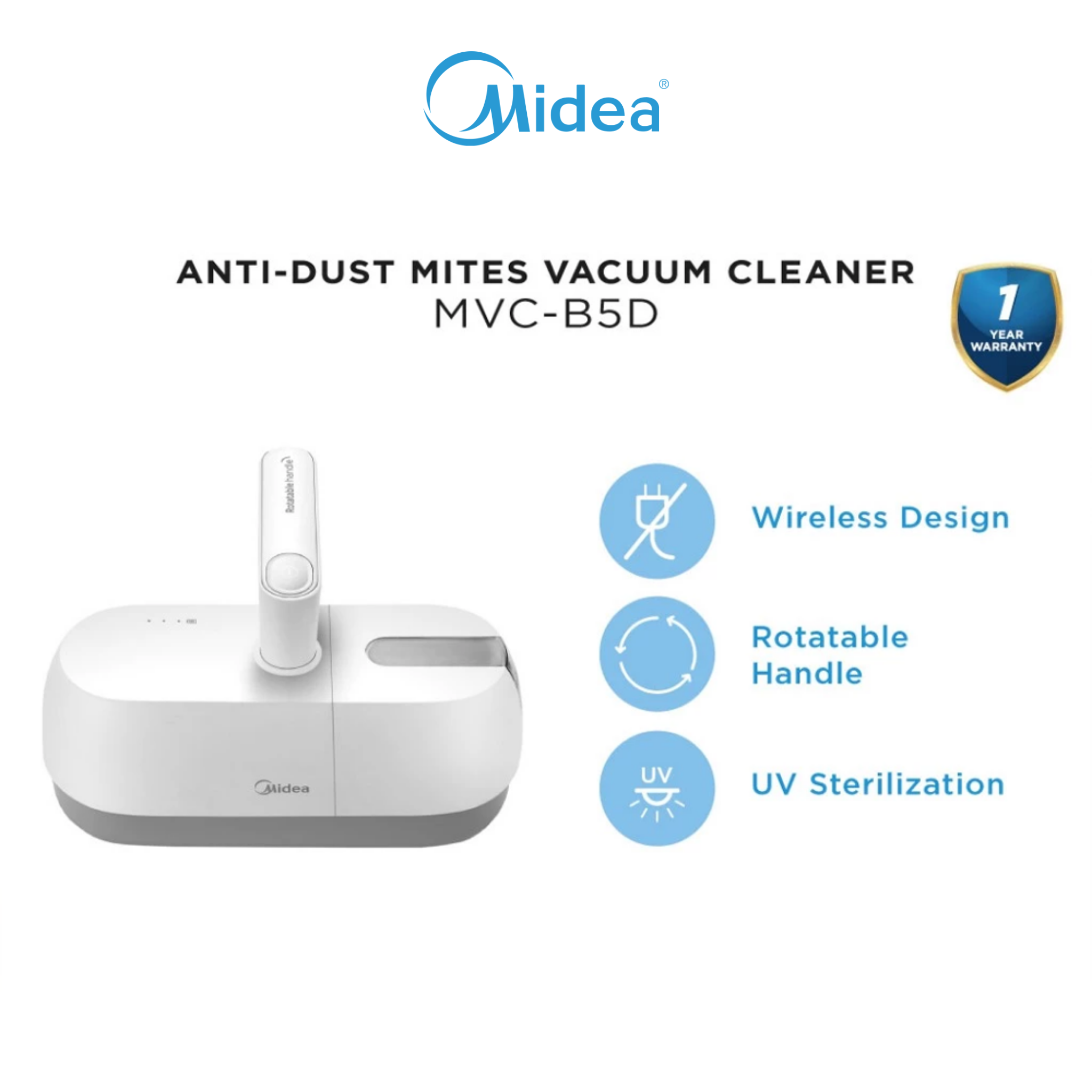 Midea Cordless Anti Dust Mite With Uv-C Vacuum Cleaner MVC-B5D