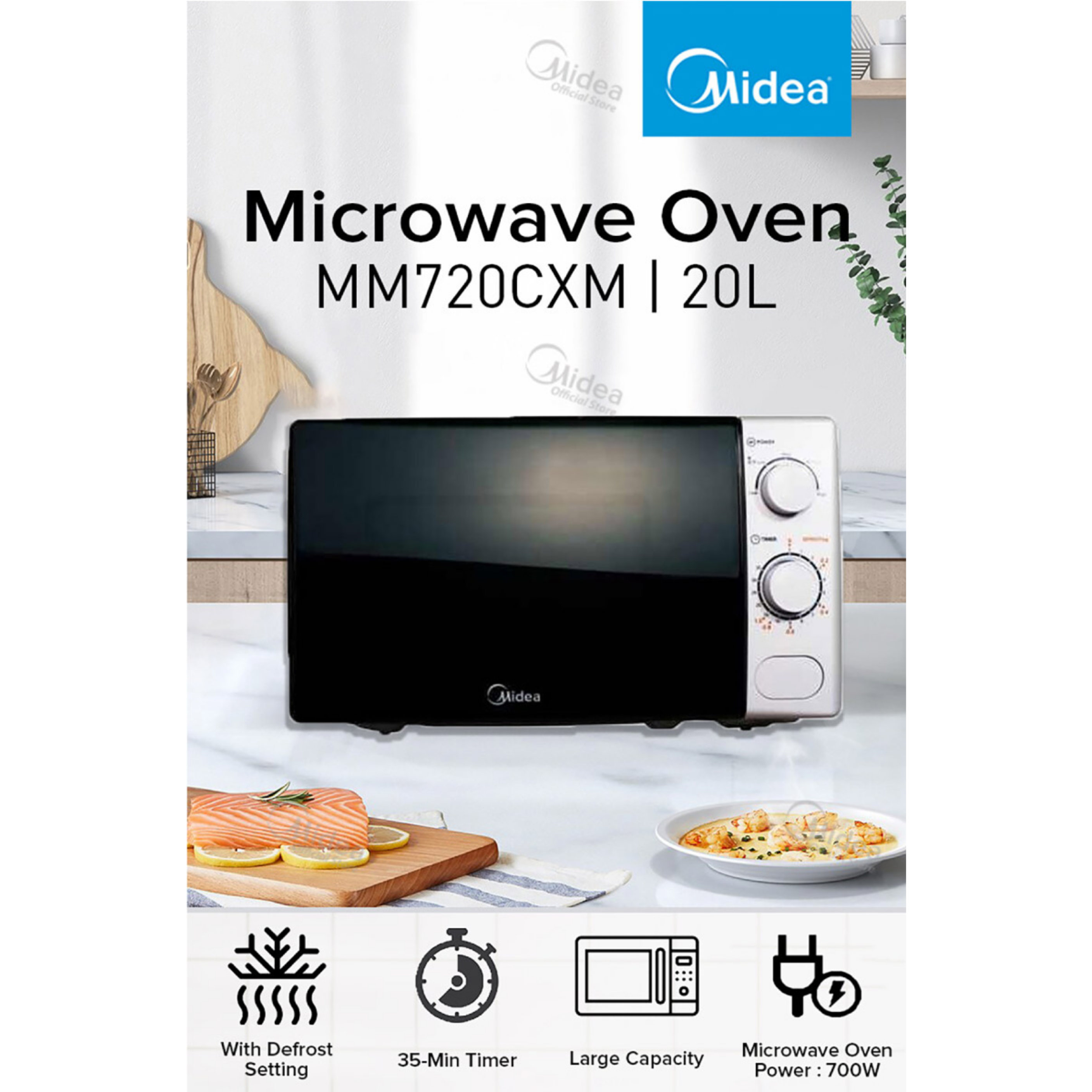 Midea Microwave Oven MM720CXM Features: - Durable Build Quality Warranty: 1 Year General Warranty
